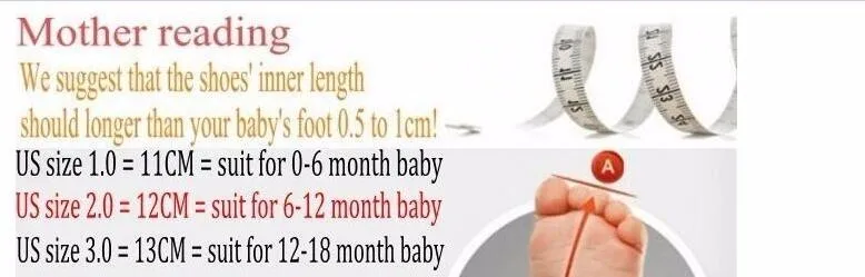 Note:the USA size is wrong please choose the size according your baby feet length.thank you Pakage:opp bags When you place the order, just consider the detail of data of size . There’s a deviation of 0.5-1 cm as the reason of laying relax.