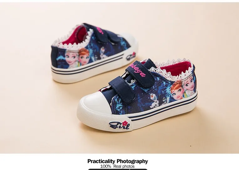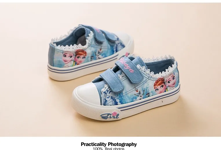 2016 New Children Snow Queen Casual Shoes Girls Child Princess Elsa Anna Canvas Shoes Denim Single Fashion Sneakers Ice Queen