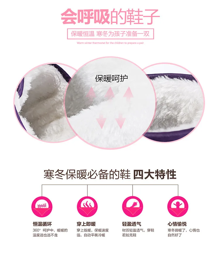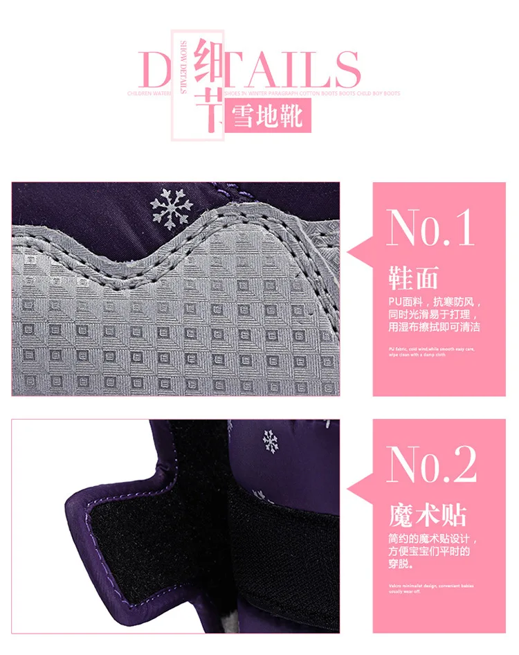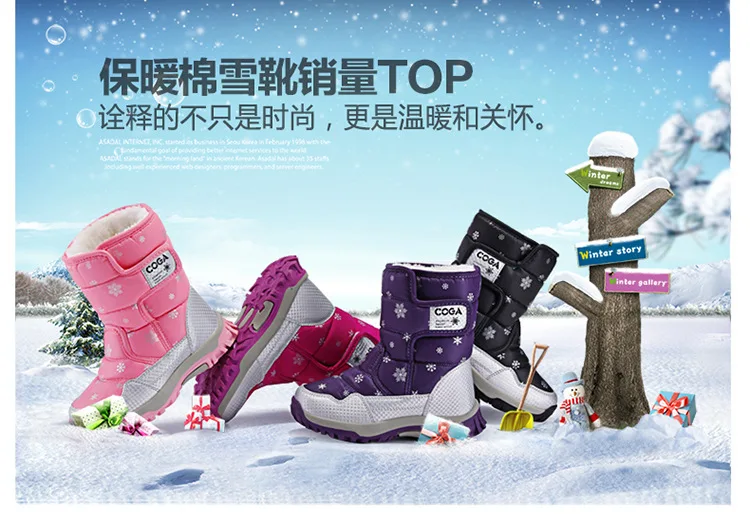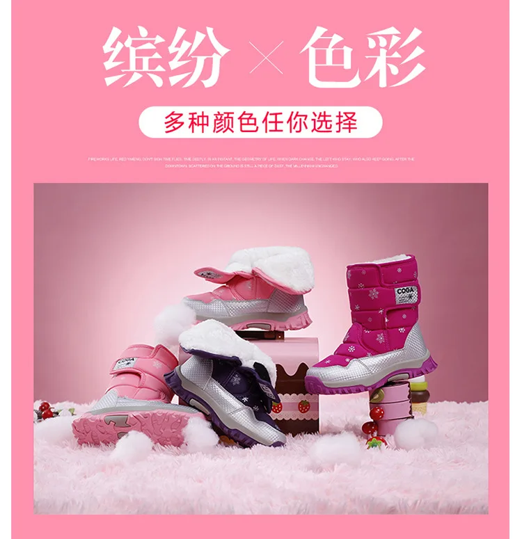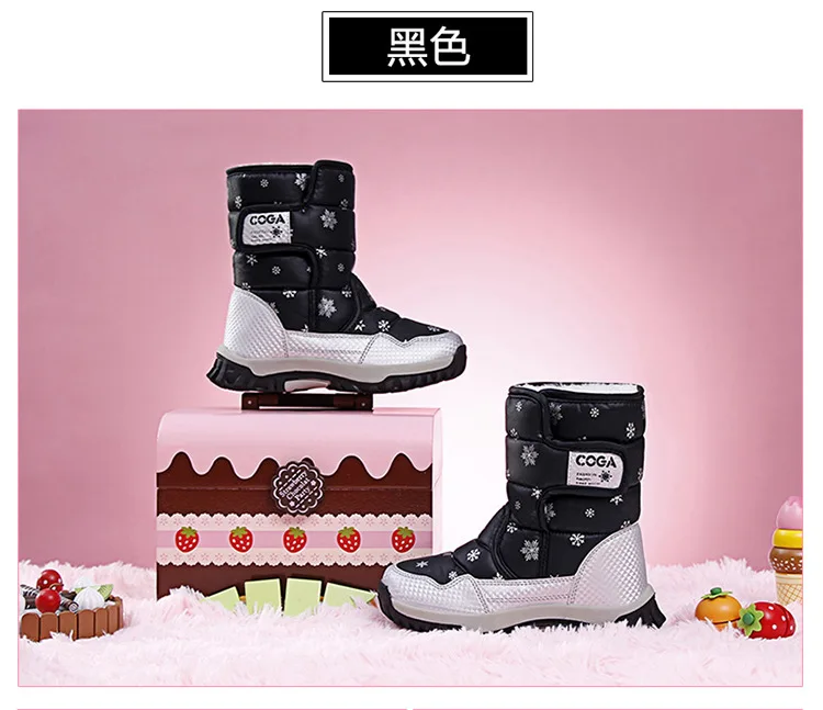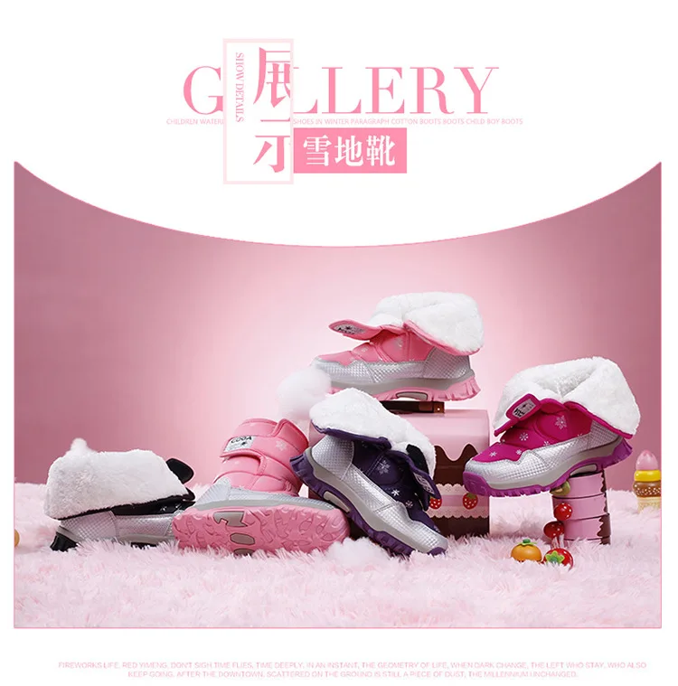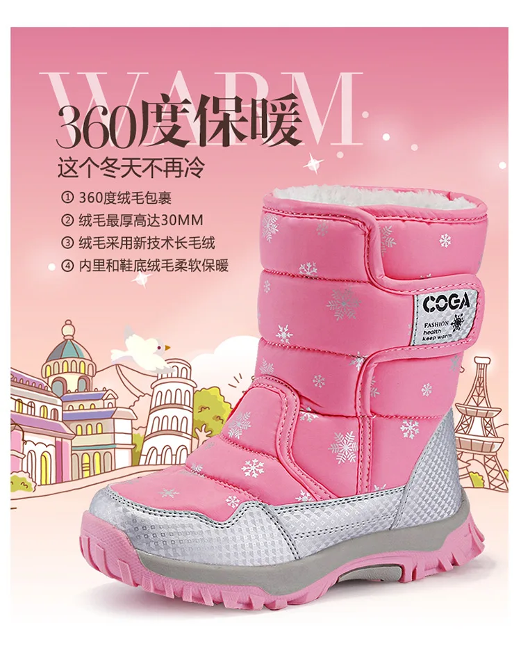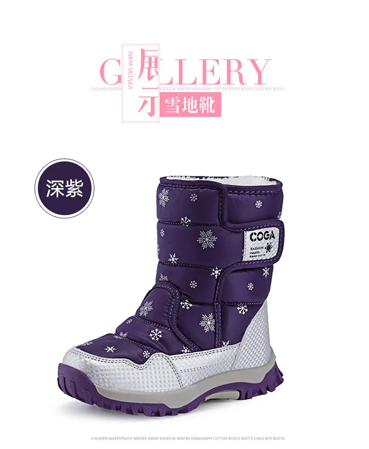 Boys Girls Winter Boots Snow Printing Warm Short Boot Kid Casual Shoes Botte Enfant FIlle Black Purple Pink Children Flats 26-38