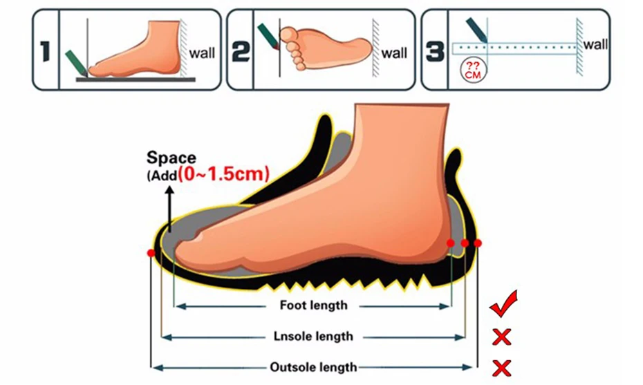 Measure children`s foot to get foot length as cm
