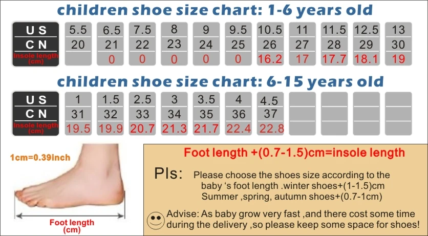 USD 6.29-11.55/piece USD 18.97-23.27/piece USD 13.40-16.18/piece USD 15.02-19.78/piece USD 24.24-24.60/piece USD 8.78-11.28/piece Please notice that the size above is inner length. And there maybe 0-1cm error due to the measure by hand. The size you need=length of your child’s feet+1~2cm … Read More