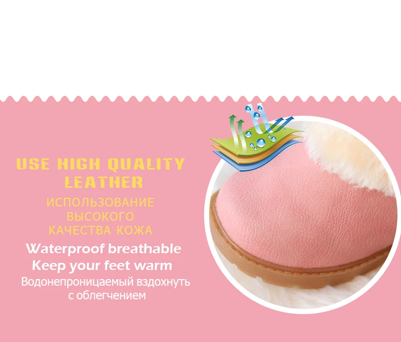 ULKNN Winter Children Shoes Boys Girls Boots Rubber Ankle Genuine Leather Fur Warm Waterproof Non-slip Snow Shoes For Kids