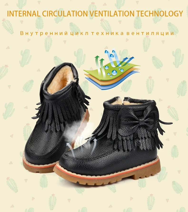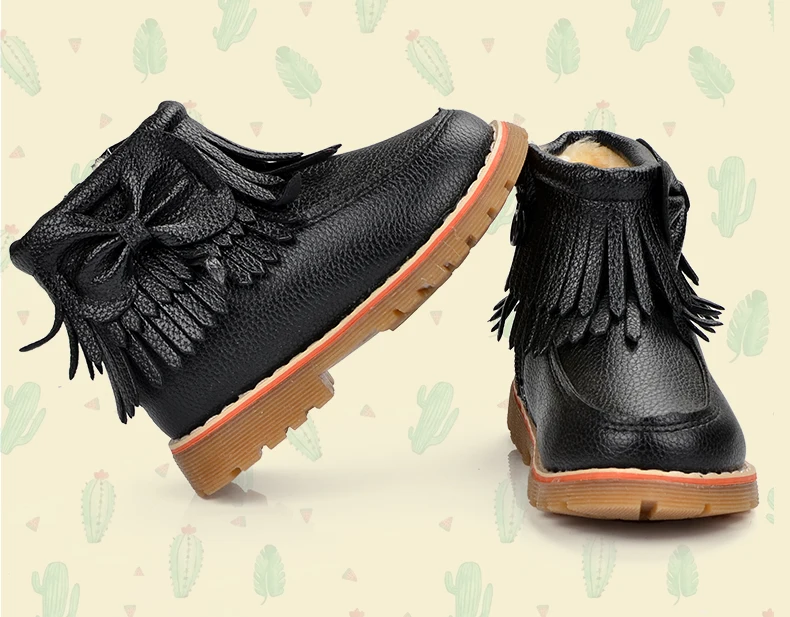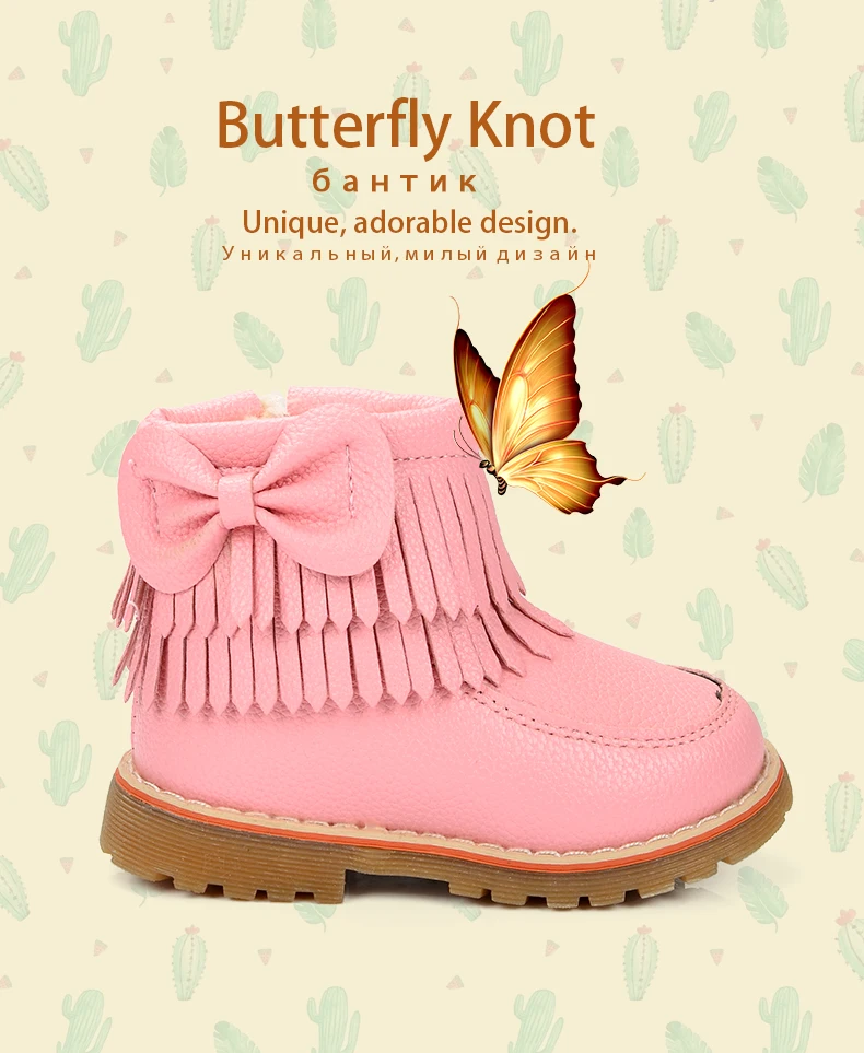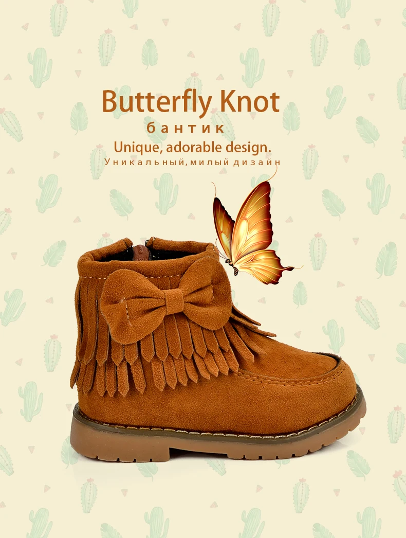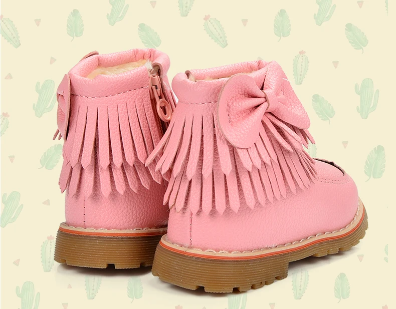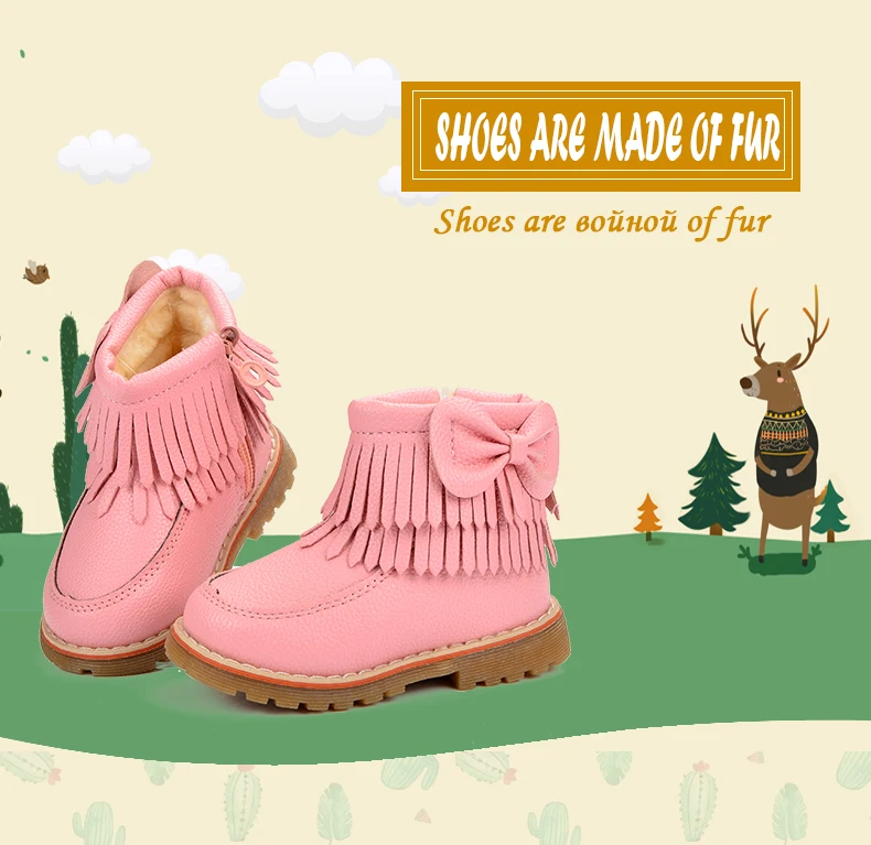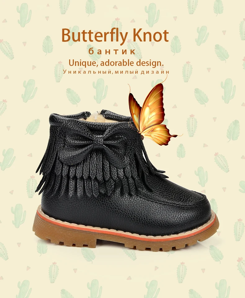 ULKNN Girls Snow Boots Kids Shoes Plush Butterfly Knot Tassel Zipper Thick Bottom Shoes Waterpoof Fringe Short Boots bota menina