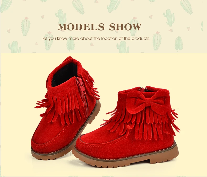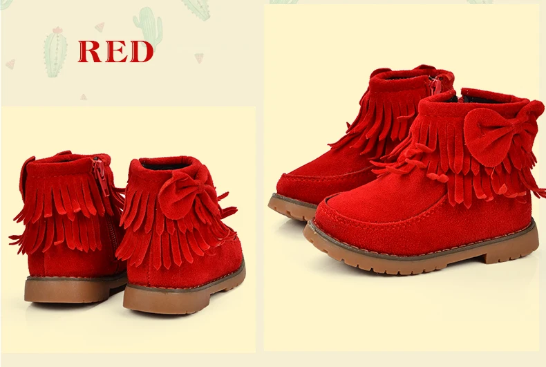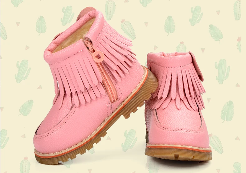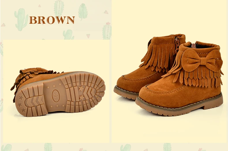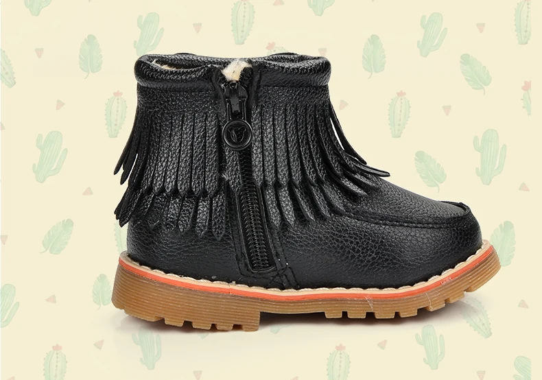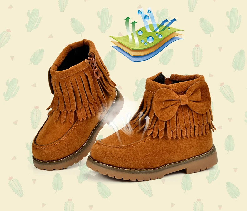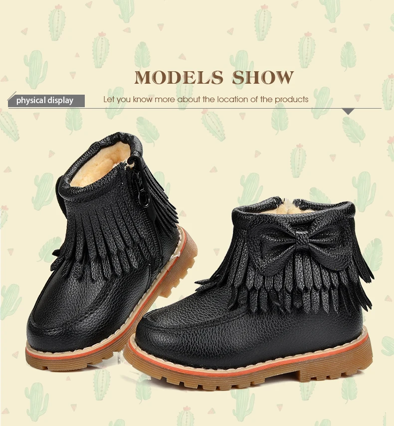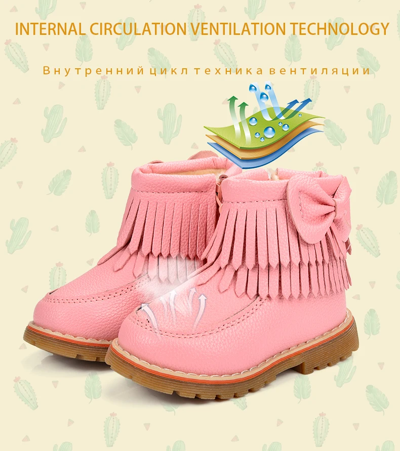 ULKNN Girls Snow Boots Kids Shoes Plush Butterfly Knot Tassel Zipper Thick Bottom Shoes Waterpoof Fringe Short Boots bota menina