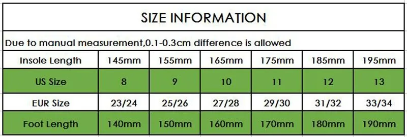 3. “EUR” size is only for your reference, so pls only trust your foot length;