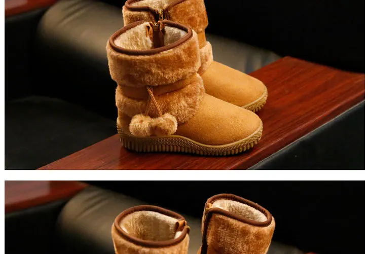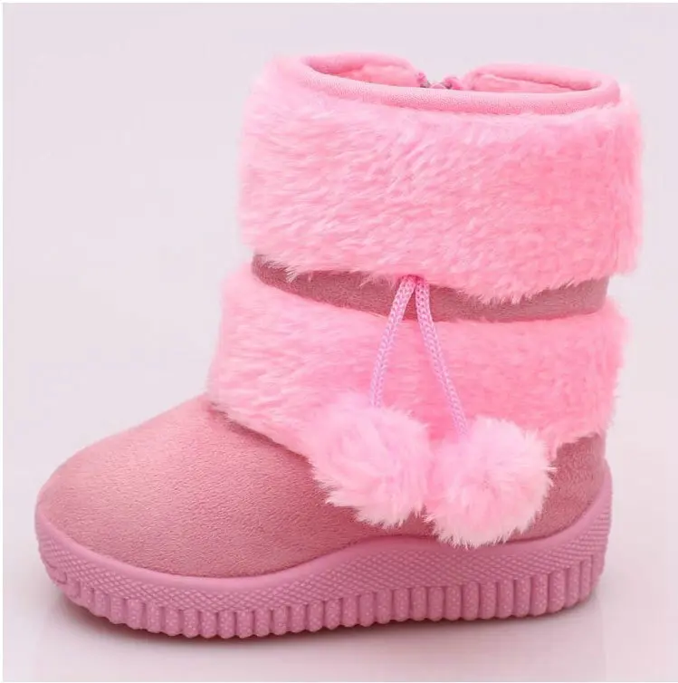 Winter Children Boots Thick Warm Shoes Boys Cotton-Padded Suede Zip Mid-Calf Snow Boots Girl Candy Color Boots Kids Winter Shoes