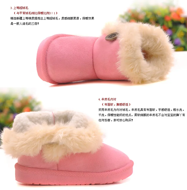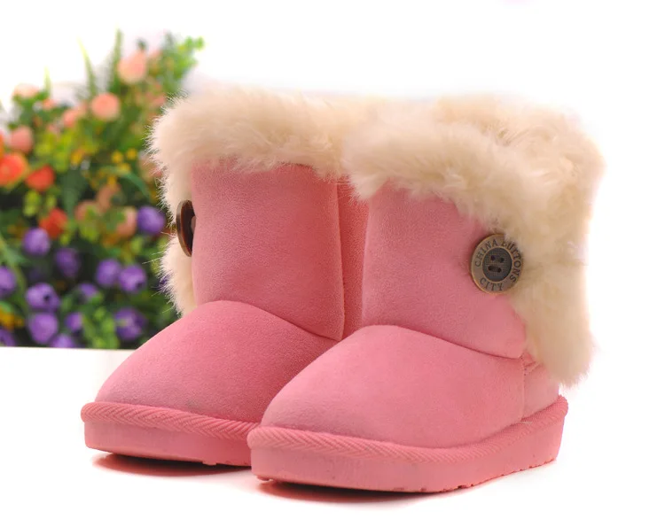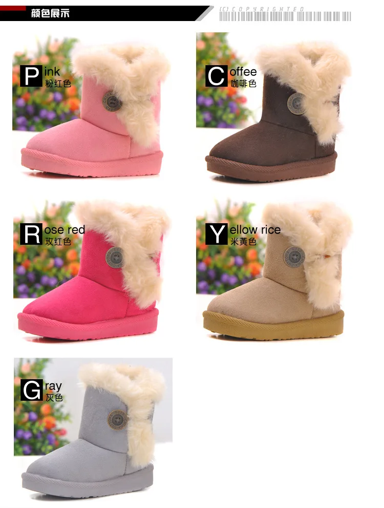 Winter Children Boots Thick Warm Shoes Cotton-Padded Suede Boots for Girls Snow Boots Kids Shoes Black Brown Red Pink