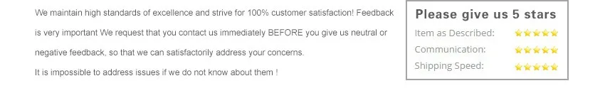 2. All returned items MUST BE in the original packaging and you MUST PROVIDE us with the shipping tracking number, specific reason