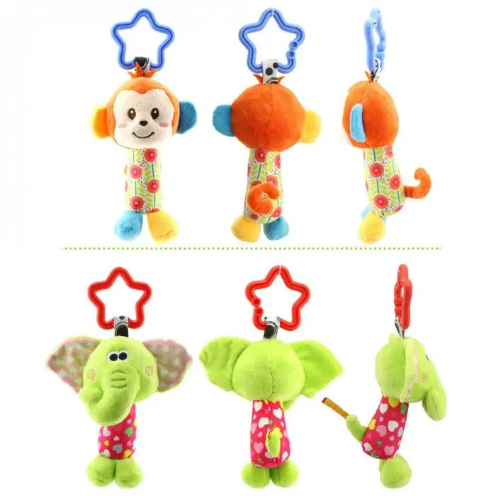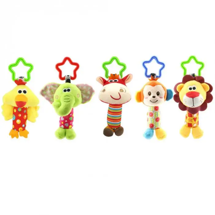 Children Plush Toys Colorful Animal Hanging Bed Crib Stroller Appease Dolls Rattles Grasping Toy Boy Girl Baby Kids Gift FL