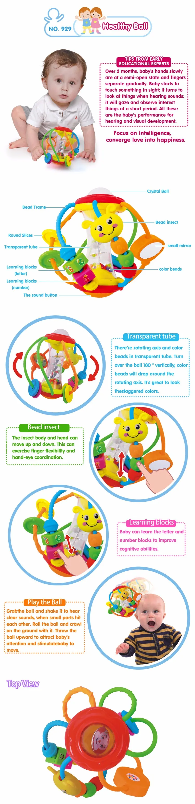 HUILE TOYS Baby Toys Ball 929 Baby Rattles Educational Toys for Babies Grasping Ball Puzzle Multifunction Bell Ball 0-18 Months