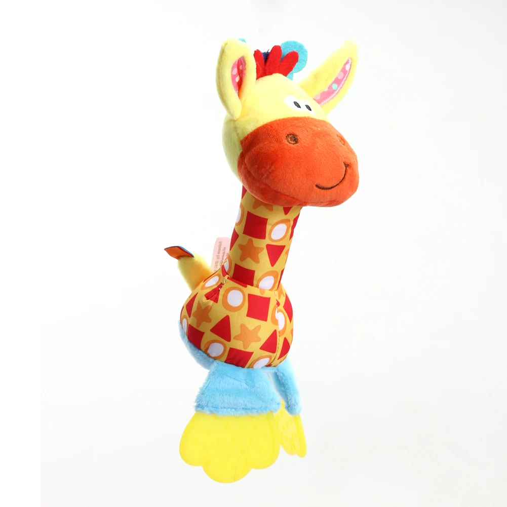 Adorable animal handbells for your sweet baby. The lovely appearance of the bell is quite popular with baby kids. The build-in bells will let out ringing sounds when shaking the animal. These lovely hand bells can also be used as bed bells and baby teether. Helps develop the sense of grab, creativity and imagination, refine hearing, improve dexterity, and develop visual sense, hand-eye co-ordination skills, and more. Specifications: Product Type: Baby hand bells, bed bells, teether Material: Plush Fill Material: Cellucotton Color: Multicolor Pattern: Giraffe/Elephant/Lion/Duck/Puppy/Monkey Recommend Age: Baby ages 0-2 years Please Note: Please make sure all the wrapping paper and gummed paper are removed before giving the hand bells to the baby.