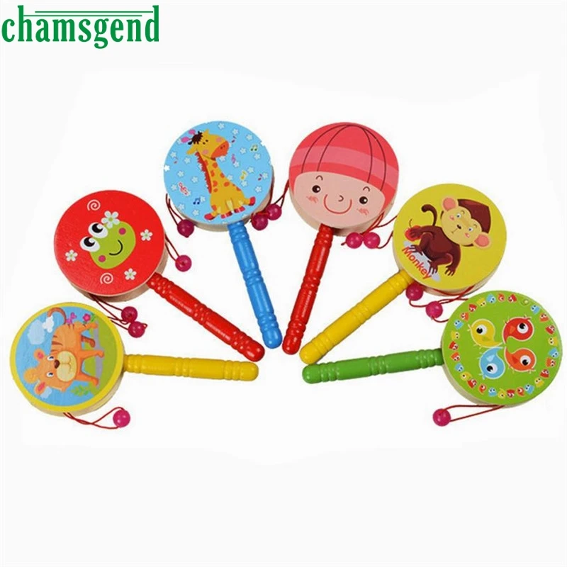 Wooden Rattle Pellet Drum Cartoon Musical Instrument Toy for Child Kids Gift