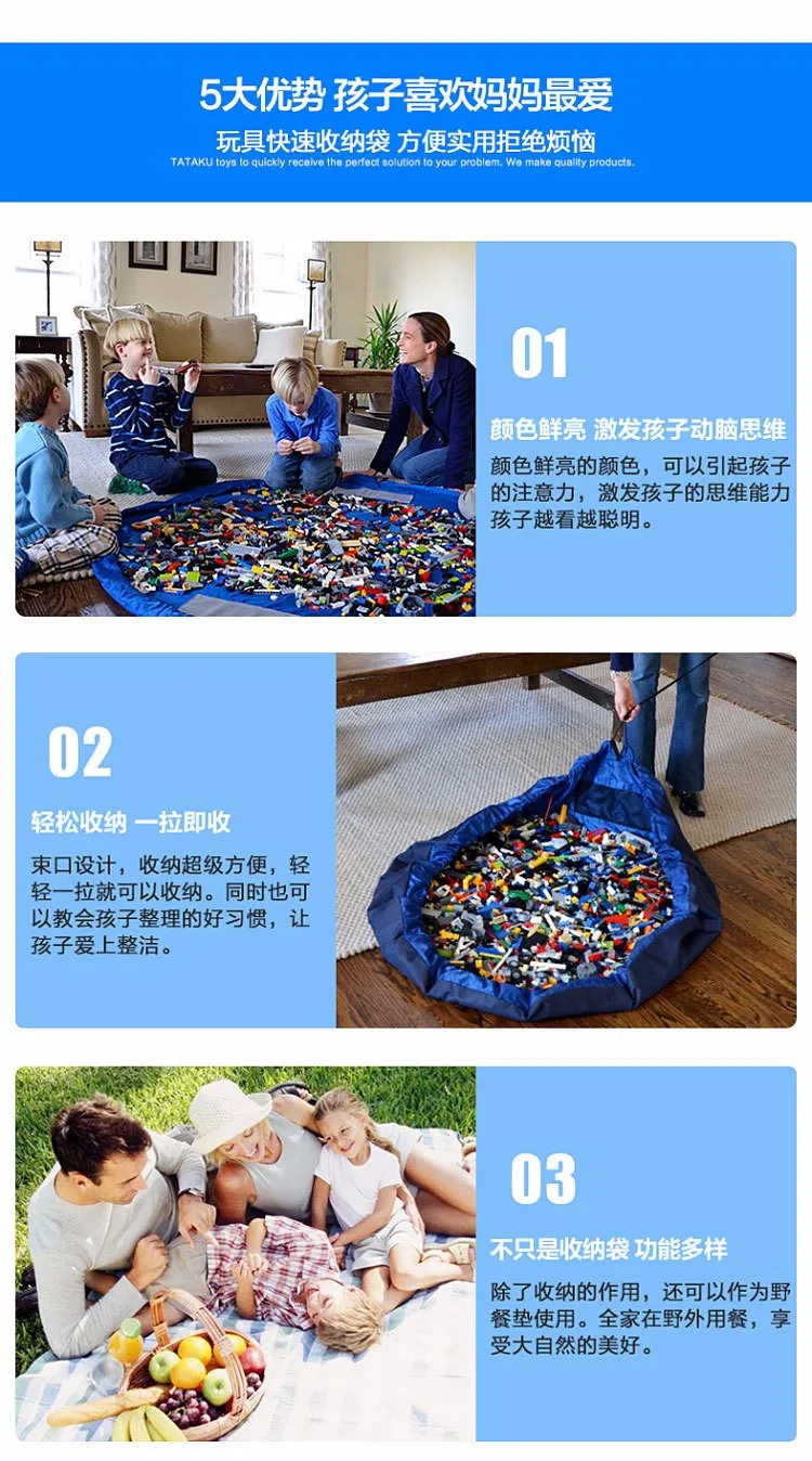 150cm Kids Play Mat Waterproof Play Mat Multifunctional Toy Storage Bag Children Play Carpet