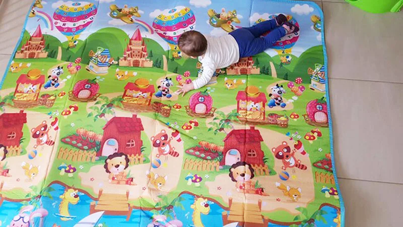 Коврик яркий, мягкий. Ребенку на нем тепло. Размер соответствует заявленному, а толщина – нет, на фото видно( доставка до МО – 25 дней.