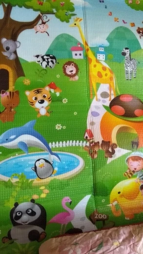 Отличный коврик. Запаха особого нет. Размеры и толщина соответствуют. Изображение четкое. Зоопарк и веселые динозавры на обороте. Цвета яркие. По краю аккуратно обшито. Упакован в сумку. Вы подарок положили наклейки и липучки для фиксации. После транспортировки в сложенном состоянии есть заломы, но не сильные. Претензий нет. Все довольны!