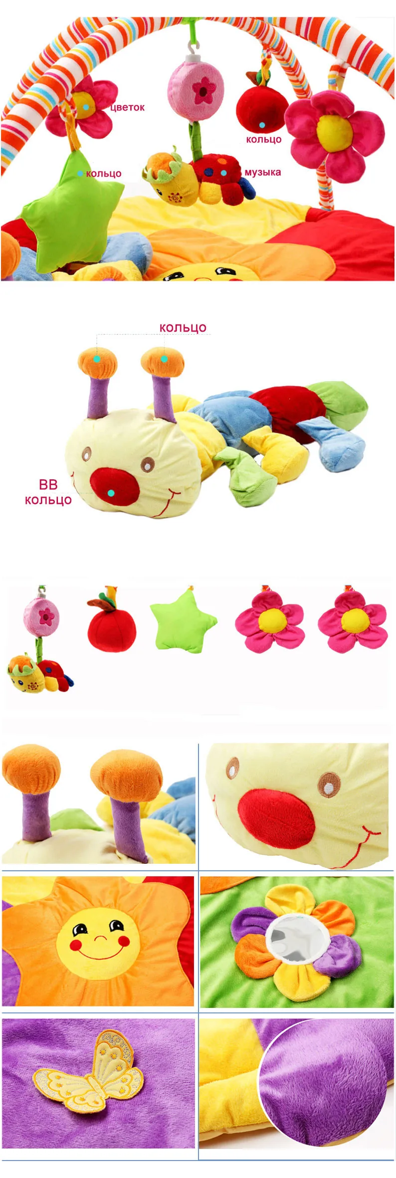 Коврик хороший, ребенок с удовольствием играет со всеми игрушками особенно с гусеницей. У нас был сломан музыкальный механизм, общение с продавцом ничего не дало, он просто перестал отвечать. А ещё у гусеницы звенит один усик. На видео показывают что оба звенят.