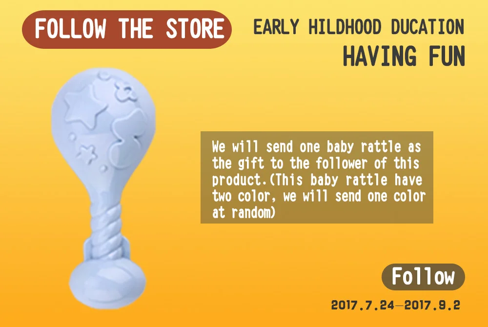 Dear friends,welcome to HUANGER OFFICIAL STORE,we are providing high quality products and good services for you,pls click “Follow” to collect our srore during July 24th to Sep. 2rd,2017, we will send you a lovely rattle as a gift.Follow us and wish you enjoy your shopping!