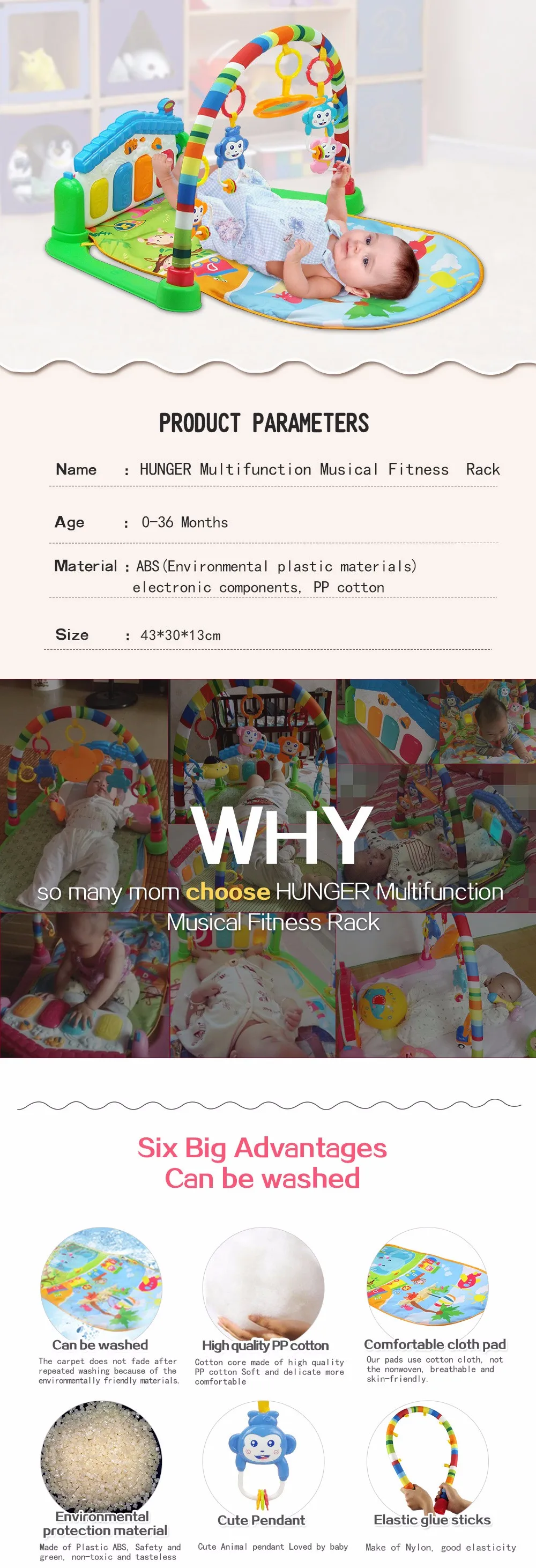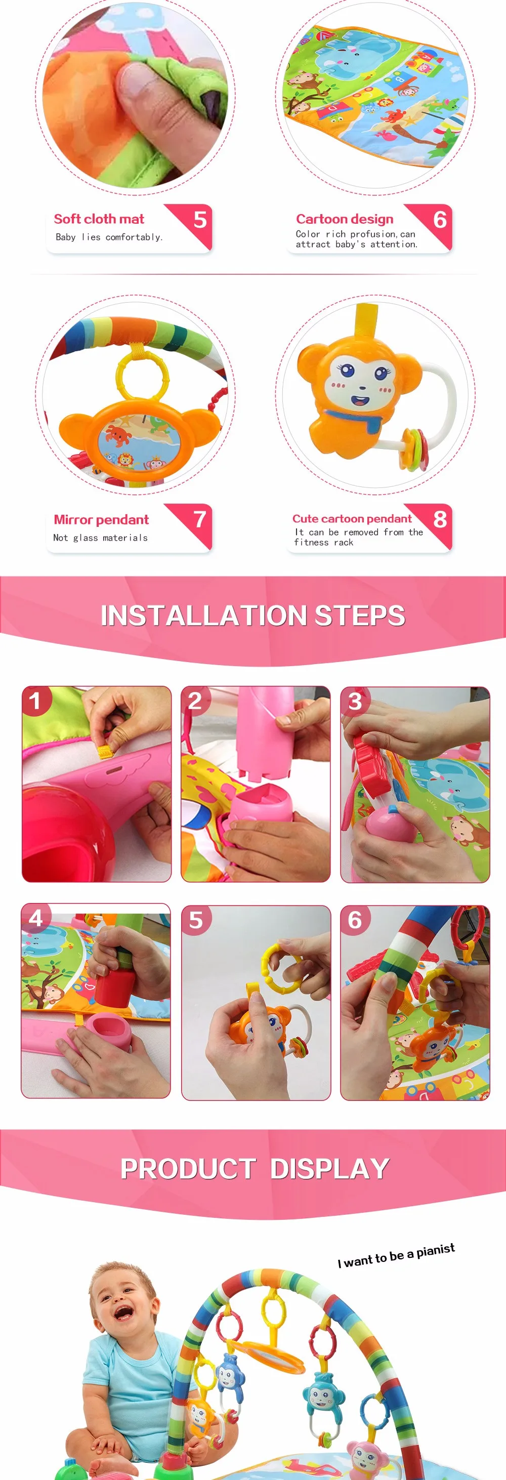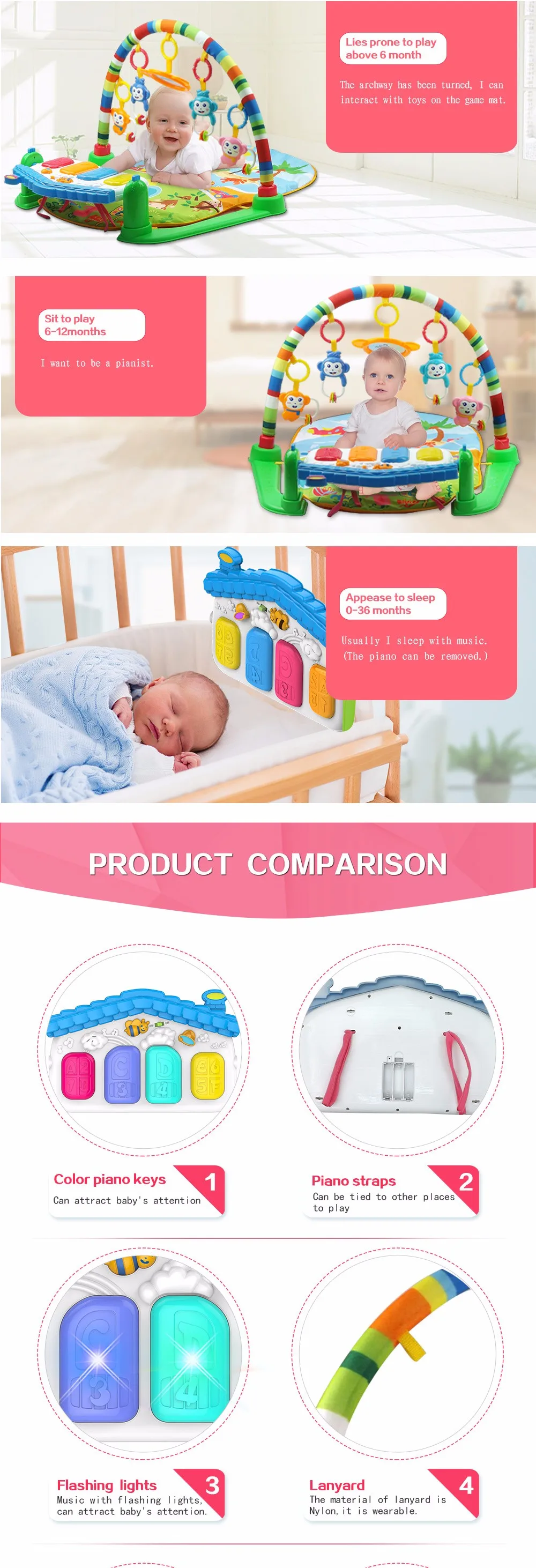 . Cute cartoon pendant and piano can attract baby’s attention. And It can be removed down to play.