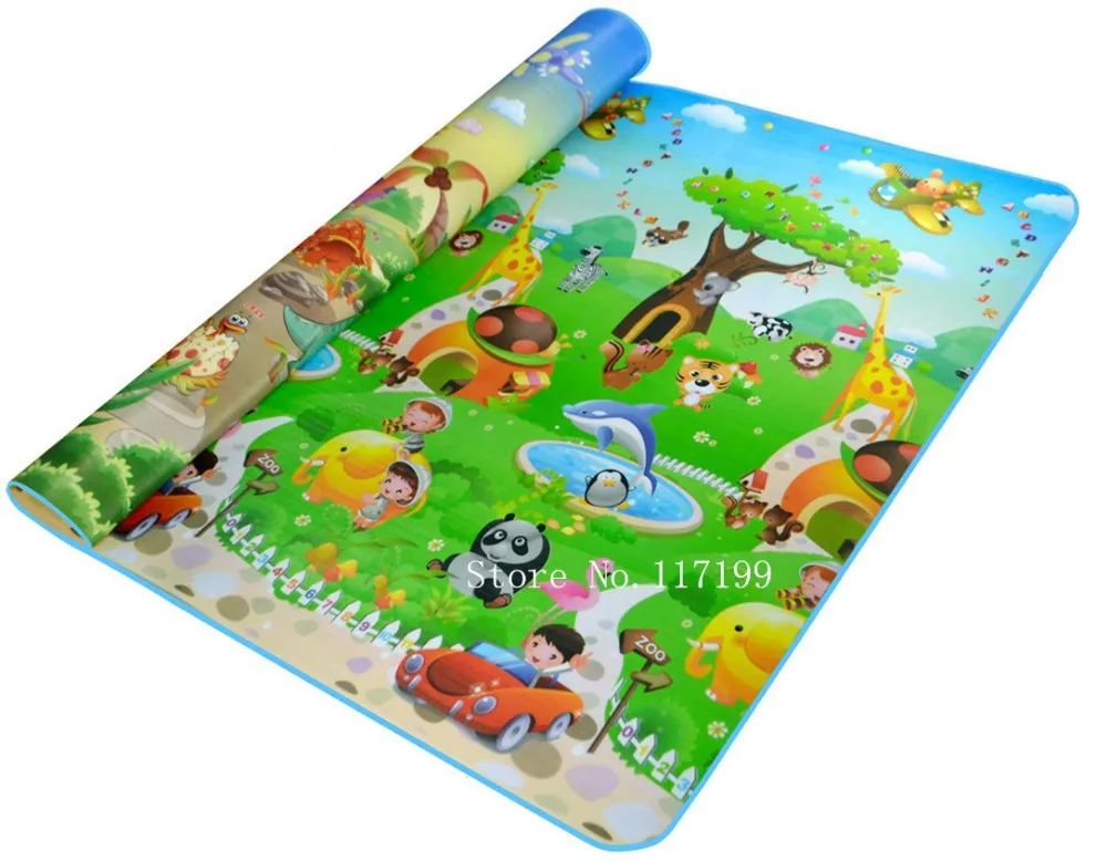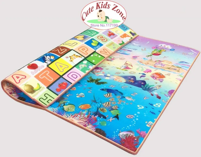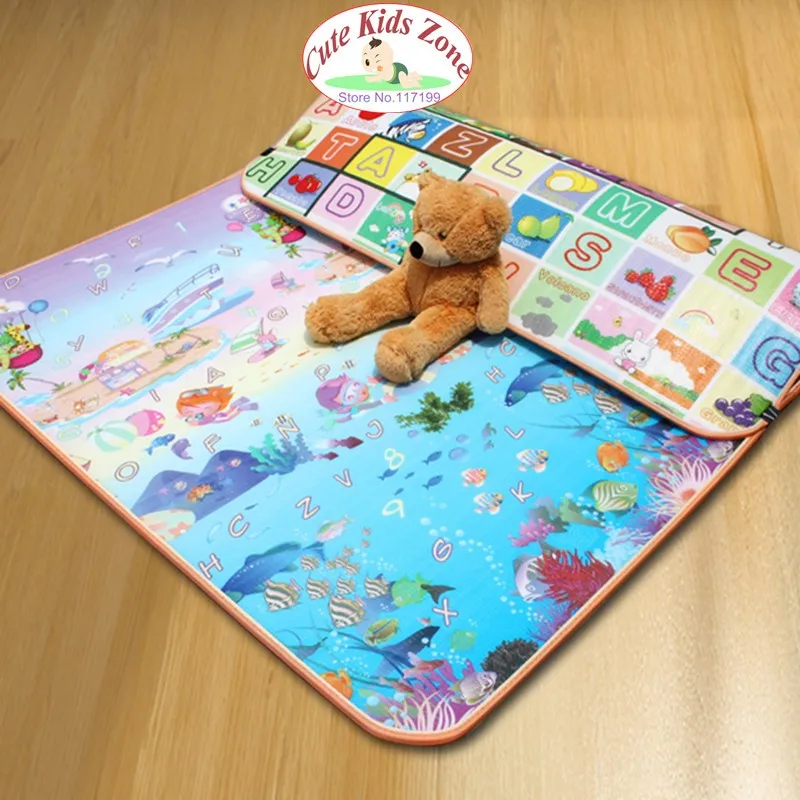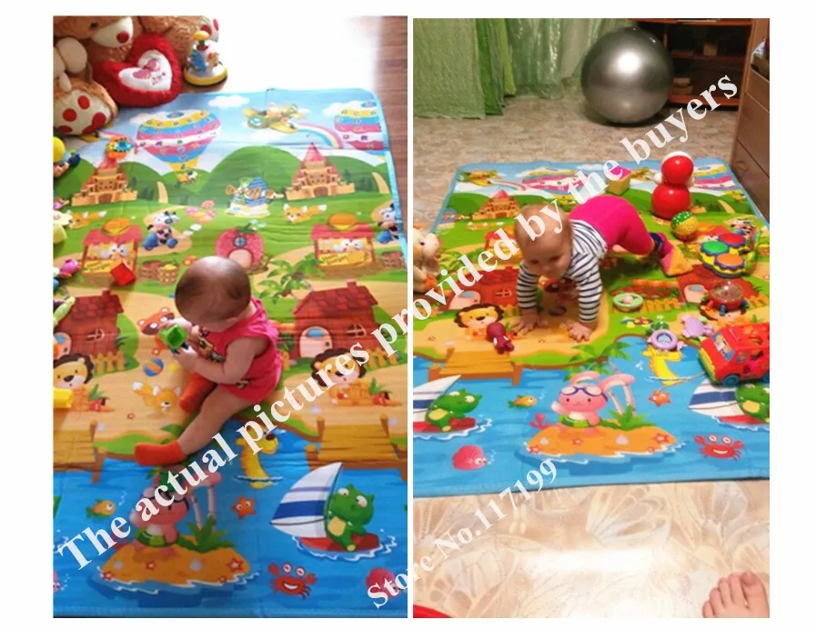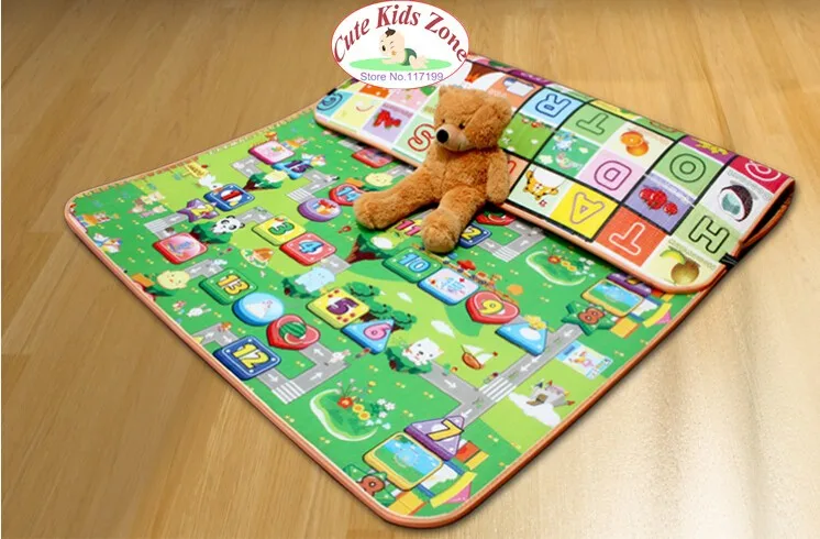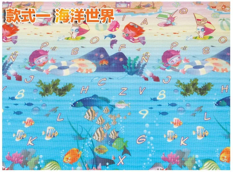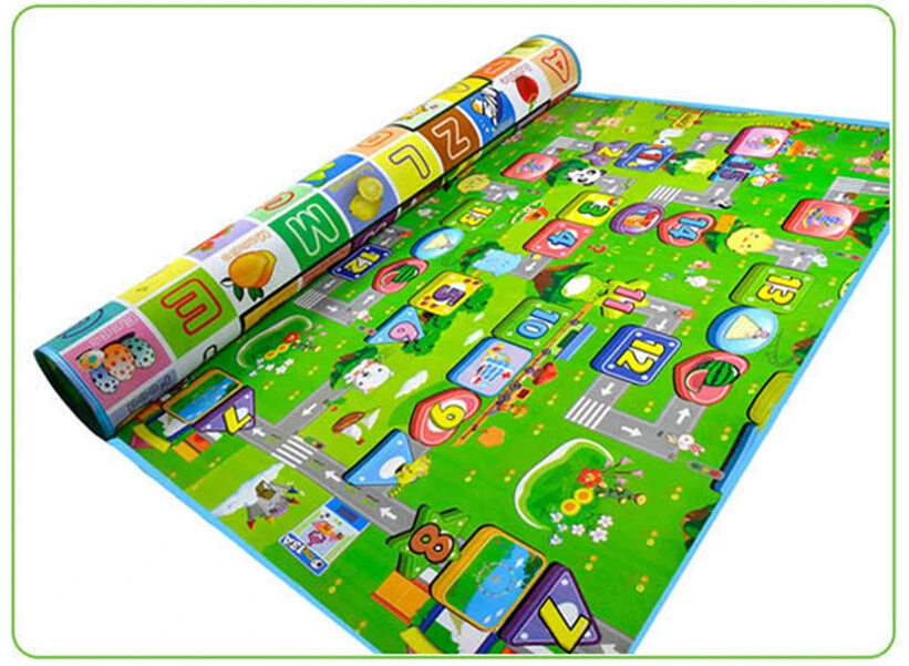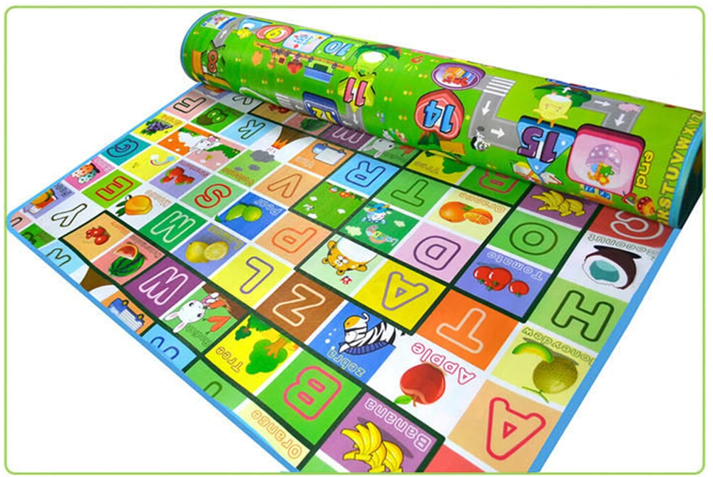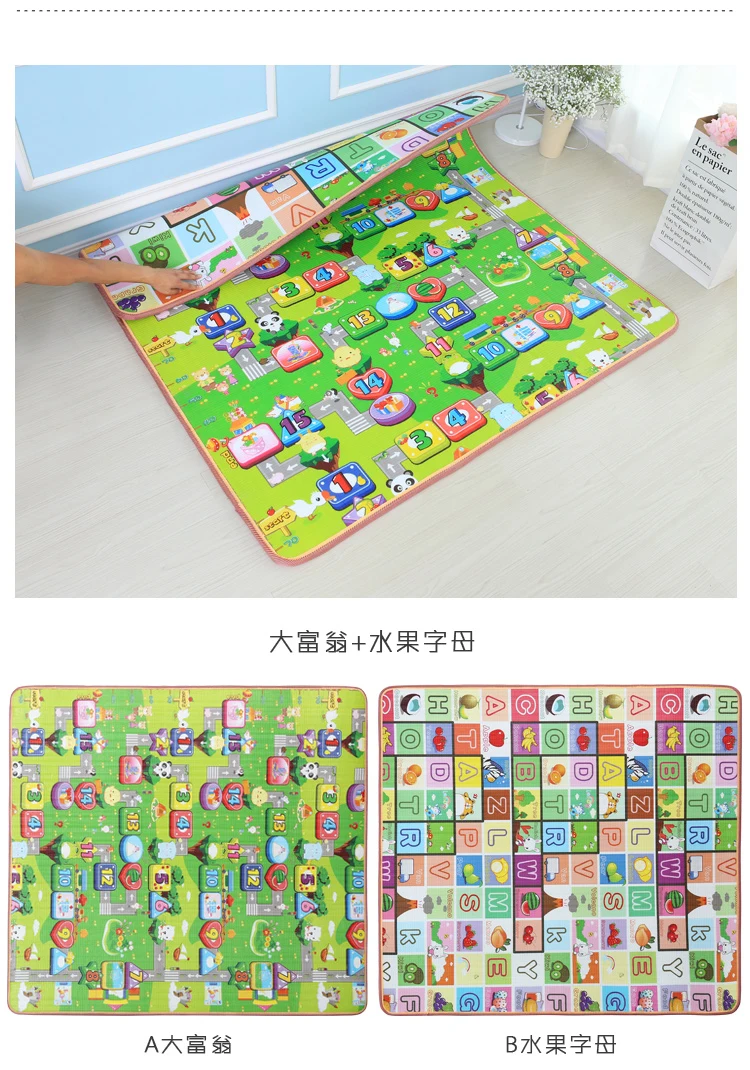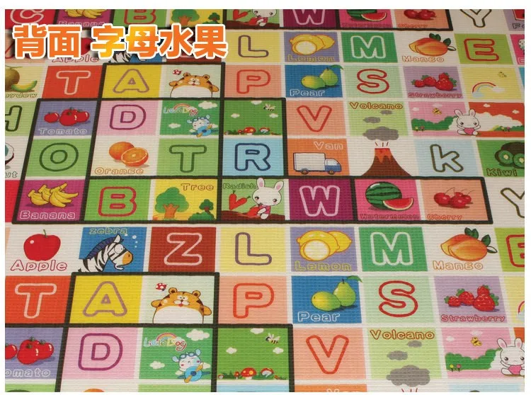 100% Brand New and High Qualit Material: OPP Preservative Film (Surface); PE Cotton (Middle-level) Size: 1.8x2m (Thickness: 0.4-0.5cm ); 1.2×1.8m (Thickness: 0.4-0.5cm ) Pattern: Double-side Print Fruit Letters And Happy Farm Package Content: