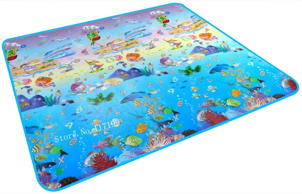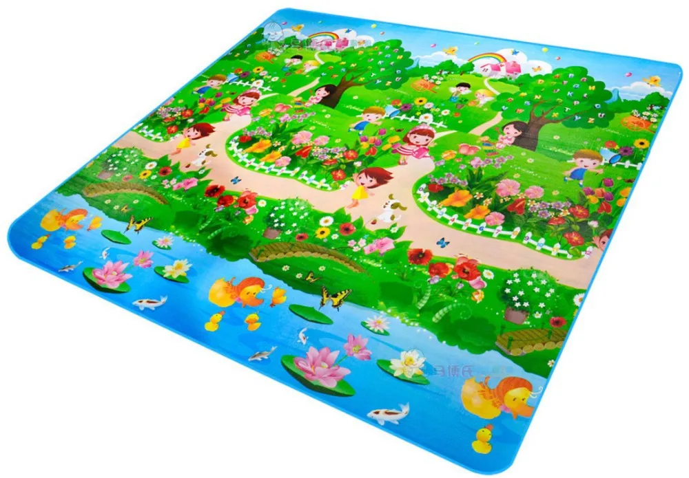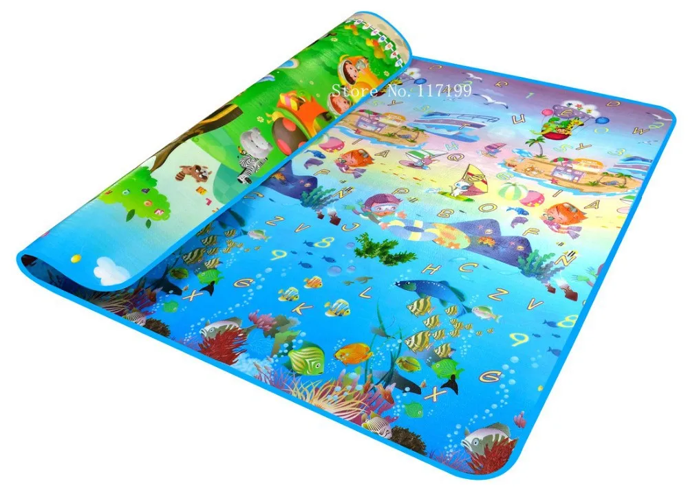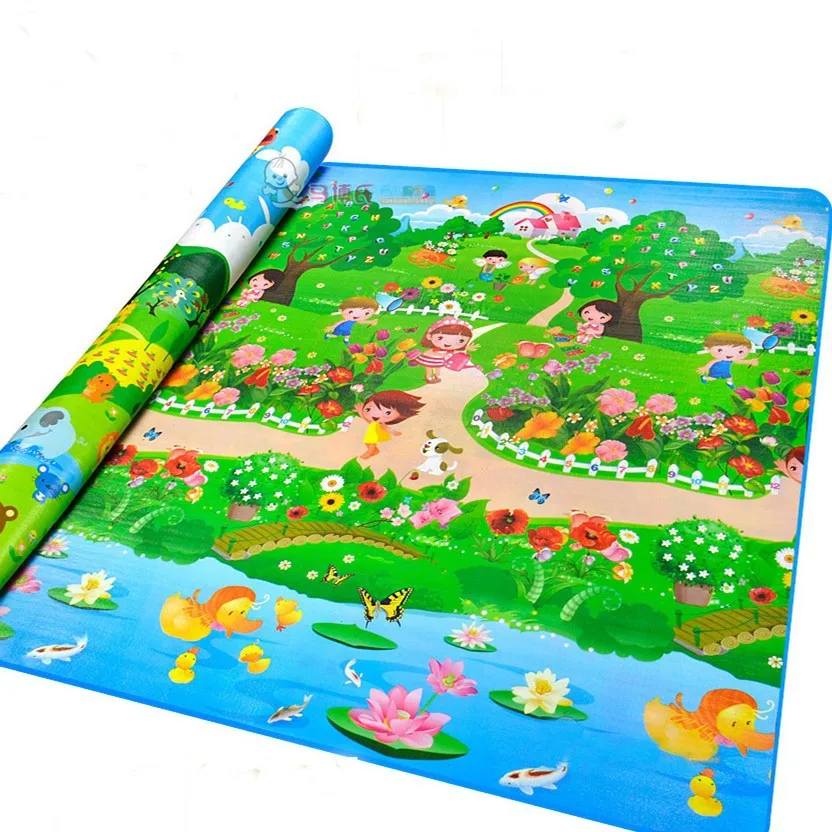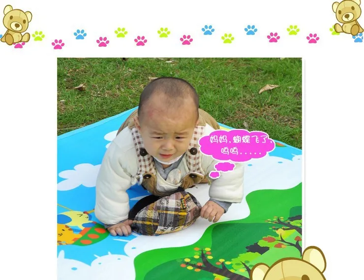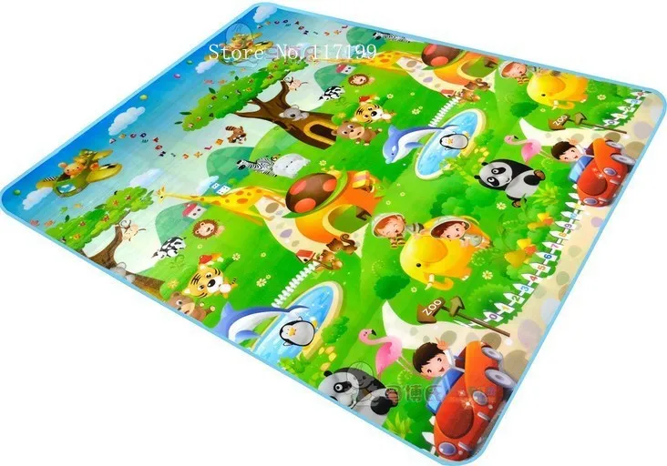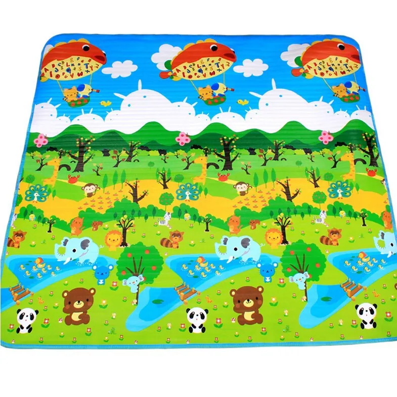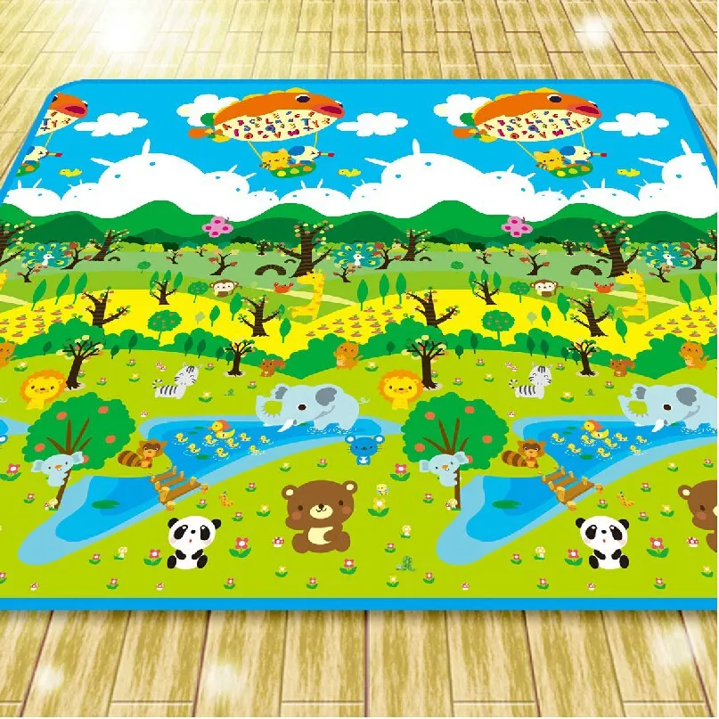 100% Brand New and High Quality Main Color: Green Material: OPP Preservative Film (Surface); PE Cotton (Middle-level) Size: 200x 180cm ;(Thickness:0.3-0.5cm) Pattern: Botanical Garden+Forest Park Package Content: 1 x Crawling Mat With Original Maboshi Bag.