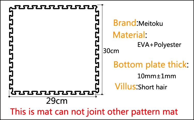 Mat each piece: 61x61cm, Average use size30x30cm,so write in page is 60x60cm