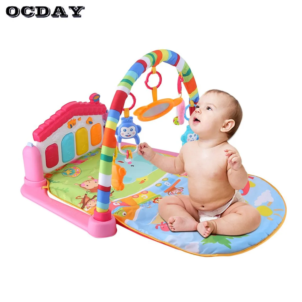 OCDAY 3 in 1 Baby Play Rug Develop Crawling Children’s Music Mat with Keyboard Infant Fitness Carpet Educational Rack Toys pad