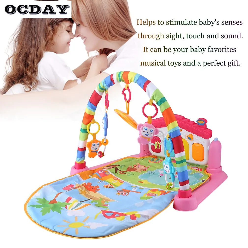 OCDAY 3 in 1 Baby Play Rug Develop Crawling Children’s Music Mat with Keyboard Infant Fitness Carpet Educational Rack Toys pad