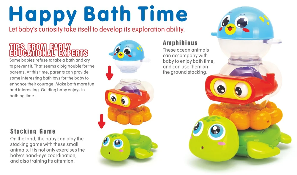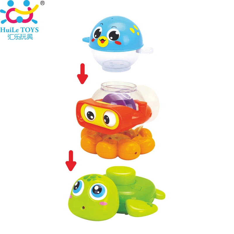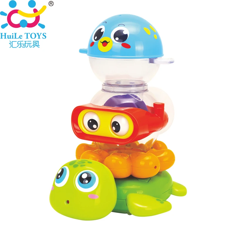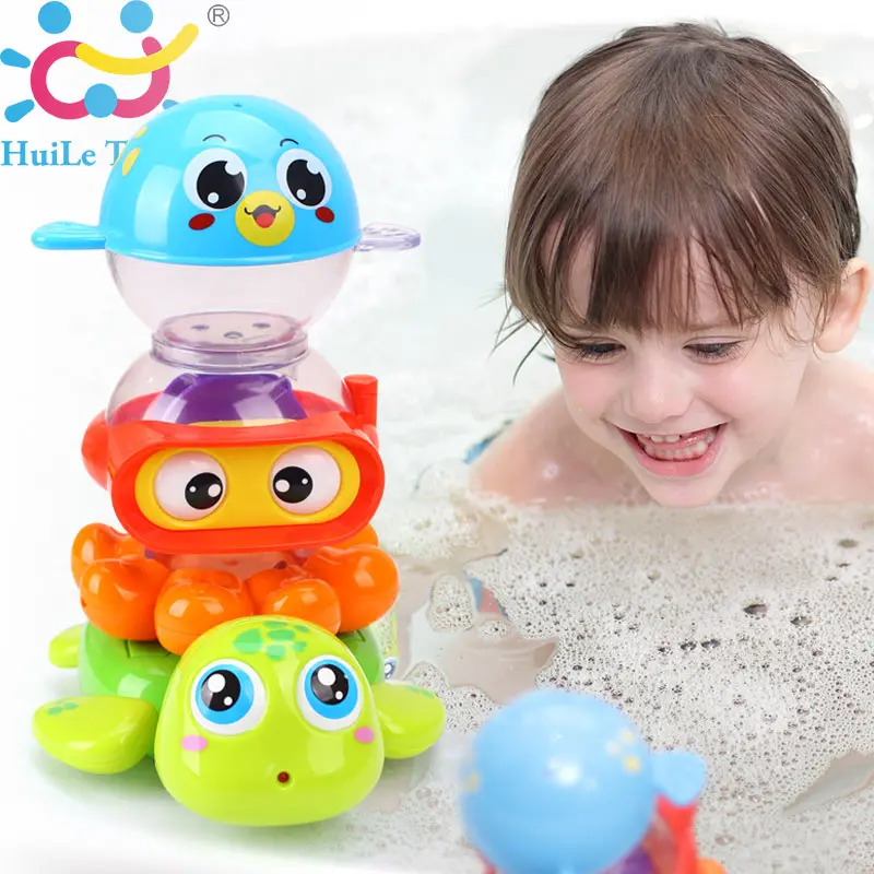 HUILE TOYS 3112 Baby Bath Toy Pool Swimming Toys Animals Stacking Game Children Kids Bathing Tub Water Spraying Tool Toy Gifts