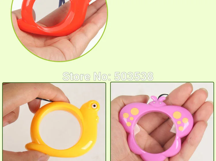 Plastic magnifiers,Kids magnifiers,Toy for children Kindergarten training supplies.Kids toys. Freeshipping.on stock.wholesale. Material:plastic Design:snail / ladybug / butterfly :each design 1PC. This is toy magnifiers for kids,the magnification times is not very high.