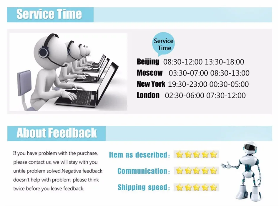 2. Pls contact us if you are not satisfied with the item after received, we would offer you a satisfactory solution before your leave us neutral or negative feedback.