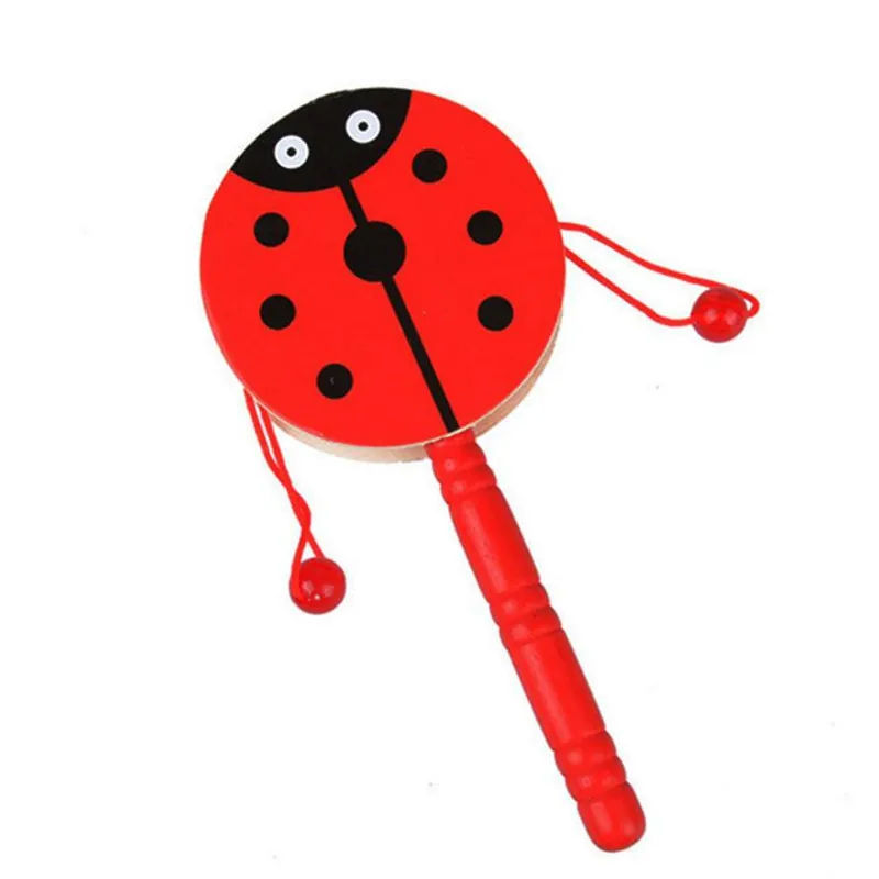 Wooden Rattle Pellet Drum Cartoon Musical Instrument Toy for Child Kids Gift
