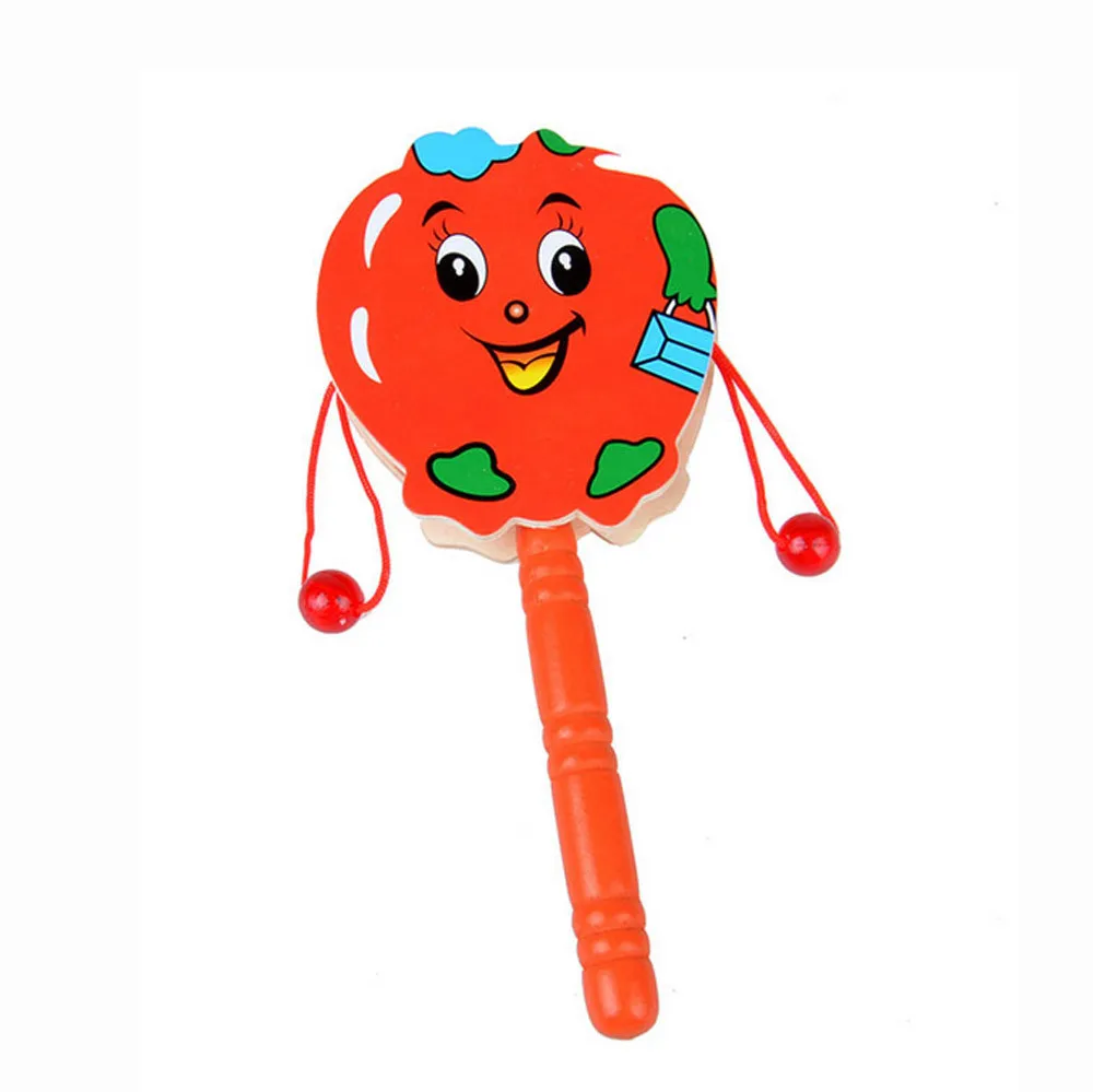 Wooden Rattle Pellet Drum Cartoon Musical Instrument Toy for Child Kids Gift