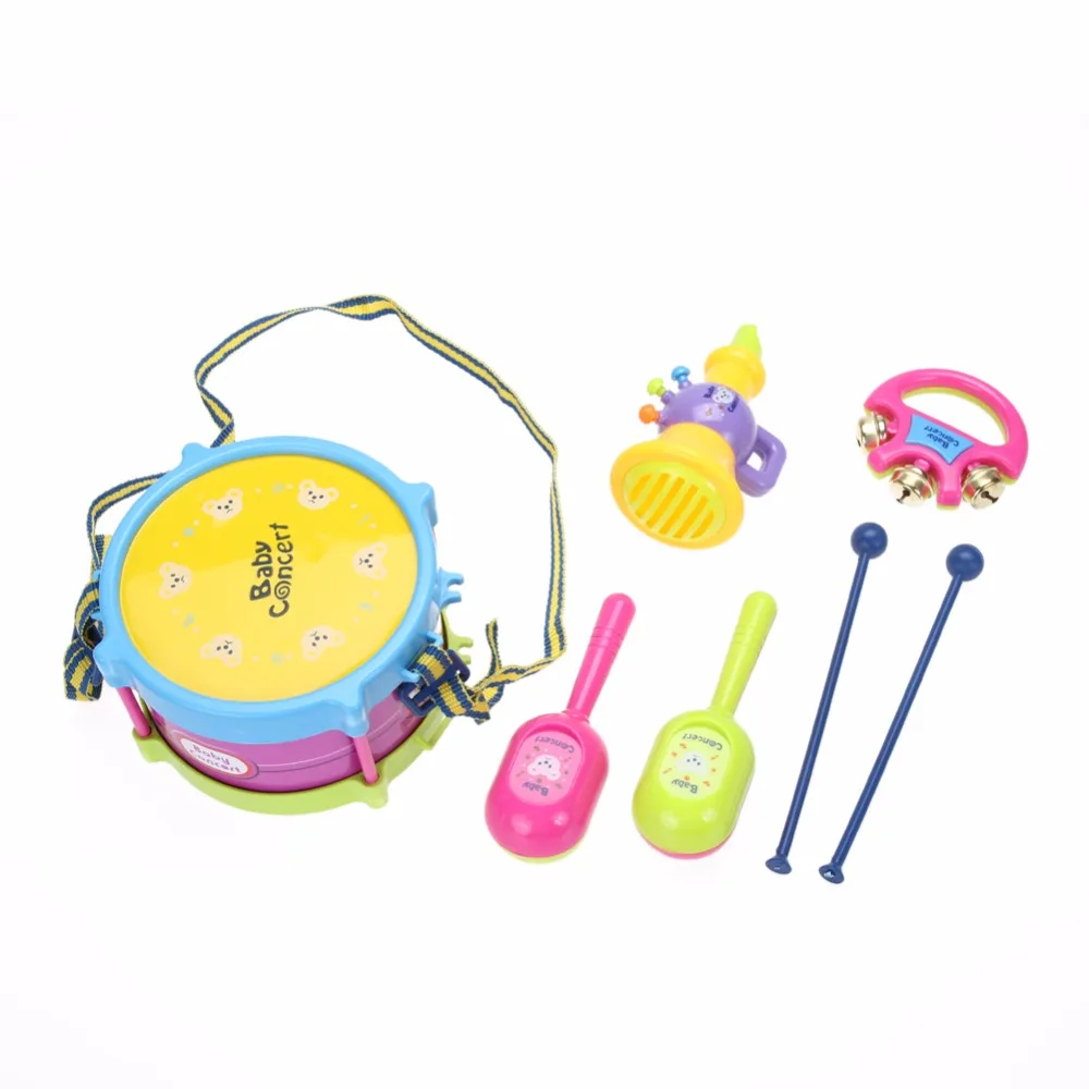 Made from high quality plastic, these musical instruments toys are healthy and safe for children. Different kinds of musical instruments toys, your baby can learn to play with them in different periods. Good early education tools, wonderful gifts for kids. Type: Musical Instruments Toys Gender: Unisex Material: Plastic Color: As the Pictures Show (We do not offer color choice, your color will be randomly sent) Sand Hammer Size: 11.5cm/4.53″ (Approx.) Handbell Size: 7.5cm x 7.5cm/2.95″ x 2.95″ (Approx.) Drum Size: 13.5cm x 13.5cm x 8cm/5.31″ x 5.31″ x 3.15″ (Approx.) Drumstick Size: 16cm/6.3″ (Approx.) Trumpet Size: 11cm x 7cm/4.33″ x 2.76″ (Approx.) 1 Set Includes: 2 x Sand Hammers, 1 x Handbell, 1 x Drum, 2 x Drumsticks, 1 x Trumpet
