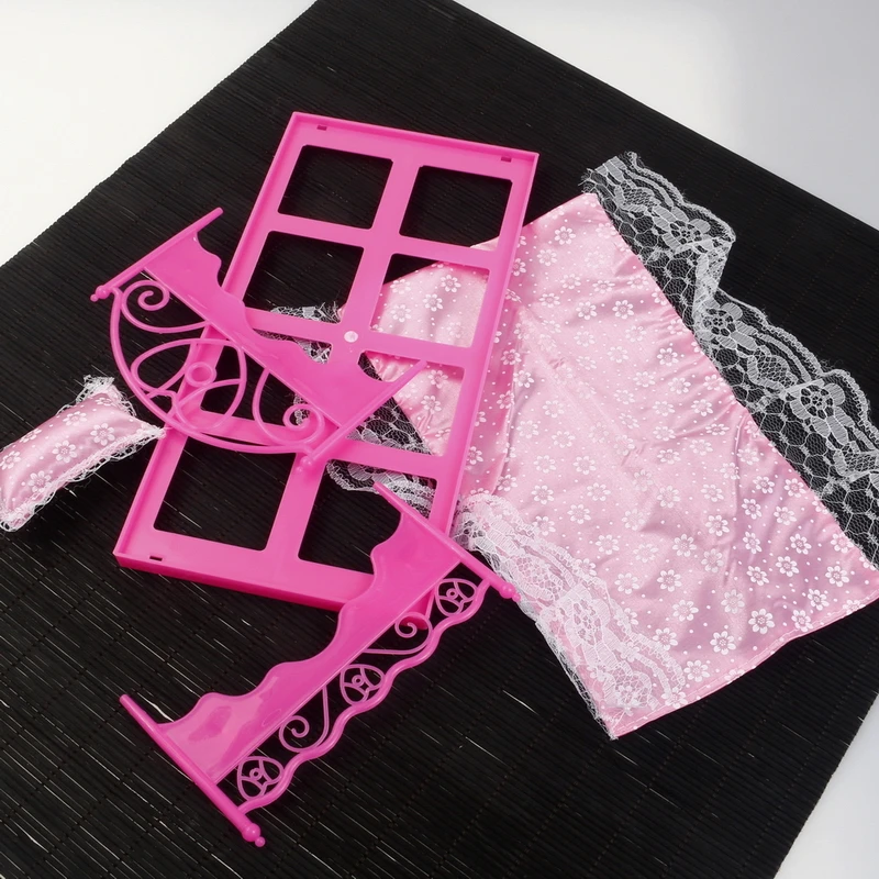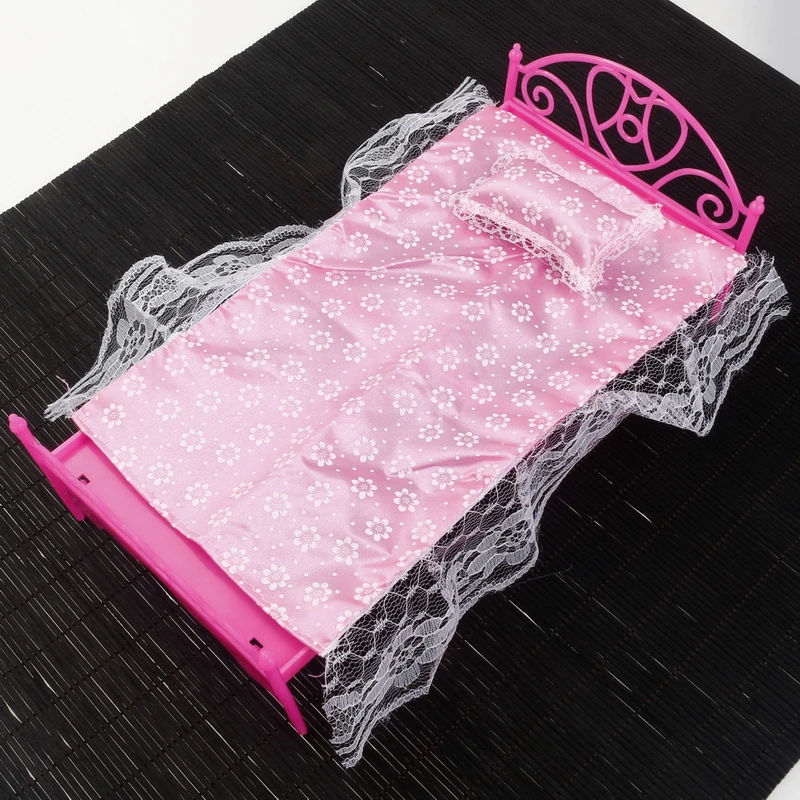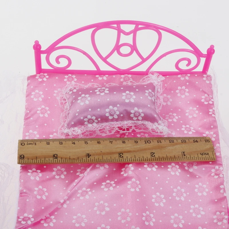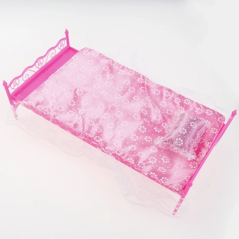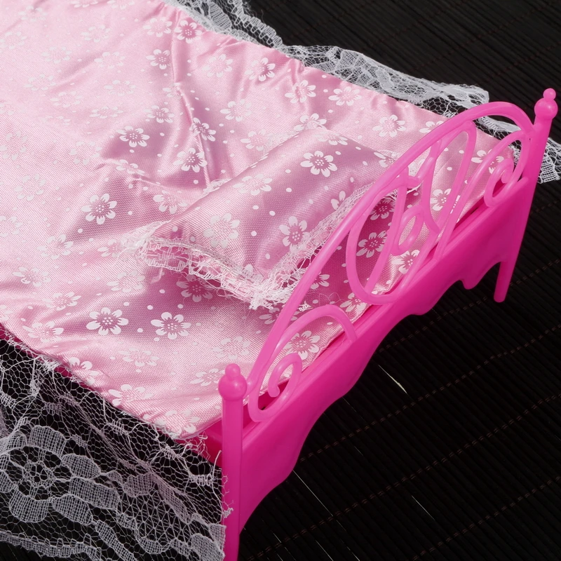 1:12 Dollhouse Miniatures Furniture Accessories Berth+Bed Sheet+Pillow Clear Plastic Lace Pink Purple White European Doll Toys