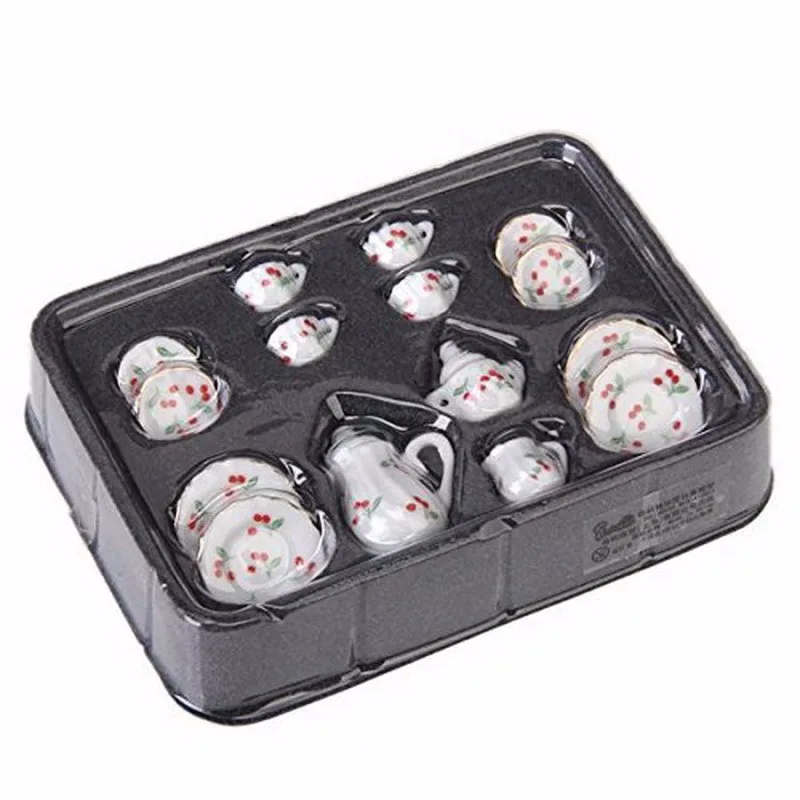 15pcs British Style 1/12 Dollhouse Miniature Dining Ware Porcelain Tea Set Dish Cup Plate Cherry Hot Sale Description: Beautiful design and excellent workmanship The porcelain tea set is a new type of miniature tea tools. The design is in line with the trend of reality ceramic tea set. Exquisite workmanship and accurate color register are worth, I recommend. It is the best choice for the decoration of Dollhouse. Don’t miss it! Applicable for: 1/12 Miniature Dollhouse Color: Blue Care Instruction: Keep it dry and cool, avoid sunning For decorative use only, not a toy Please pay attention to the young children to avoid eating by mistake or hurt. MEASUREMENTS Tea Pot Height: 3.4cm(included cover) Diameter: 2.6cm (included handle and mouth) Tea Cups Height: 0.8cm Diameter: 1.5cm (included handle) Milk Container Height: 1.3cm Diameter: 1.6cm (included handle) Small Saucers Diameter: 1.5cm Round Dishes Diameter: 2.3cm Sugar Bowl with Cover Height: 2cm Diameter: 2cm (included handles) Package Includes: 1 x Tea pot 4 x Tea cups 4 x Small saucers 1 x Sugar Bowl 1 x Milk Container 4 x Round dishes Note: Since the size above is measured by hand, the size of the actual item you received could be slightly different from the size above. Meanwhile, please be reminded that due to lighting effects, monitor’s brightness / contrast settings etc, there could be some slight differences in the color tone of the pictures and the actual item.
