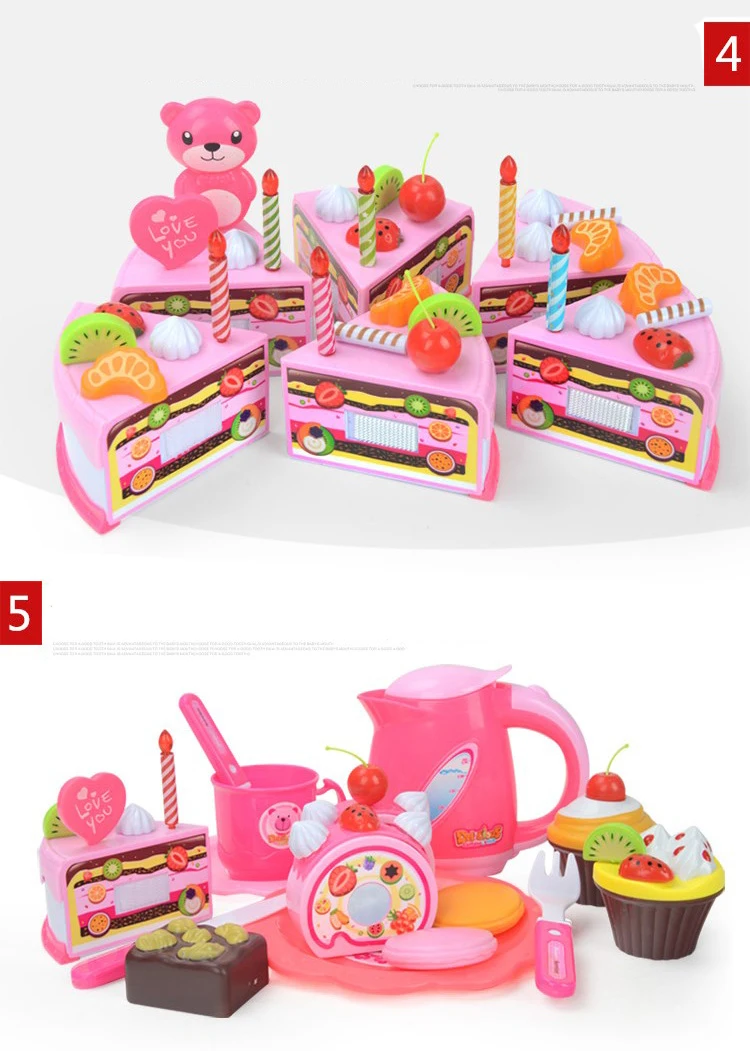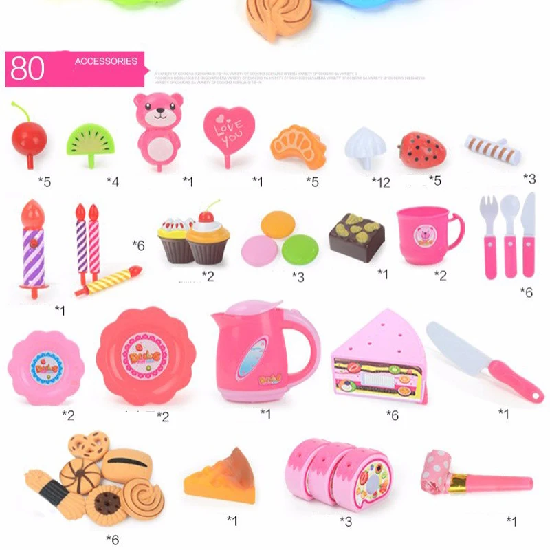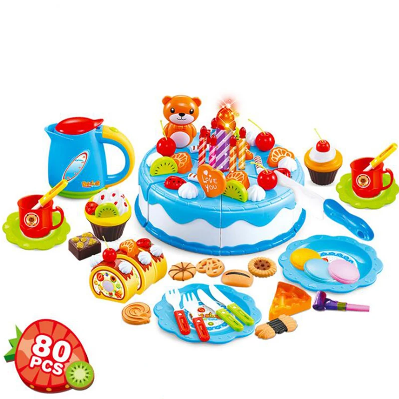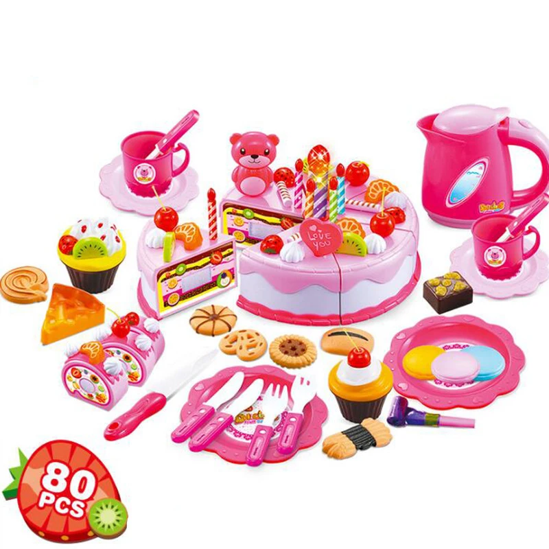 80Pcs Kitchen Toys Pretend Play Cutting Birthday Cake Food Toy Kitchen For Children Cocina De Juguete Plastic Play Food Tea Set