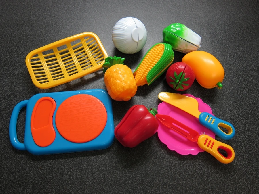 Comes with a plastic knife for children to cut the toys of fruit and vegetables