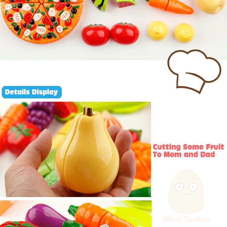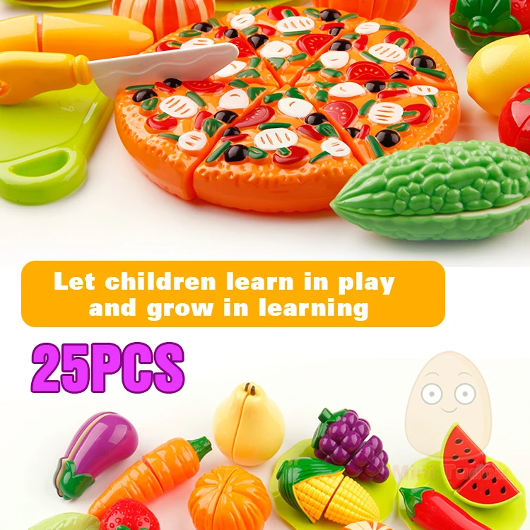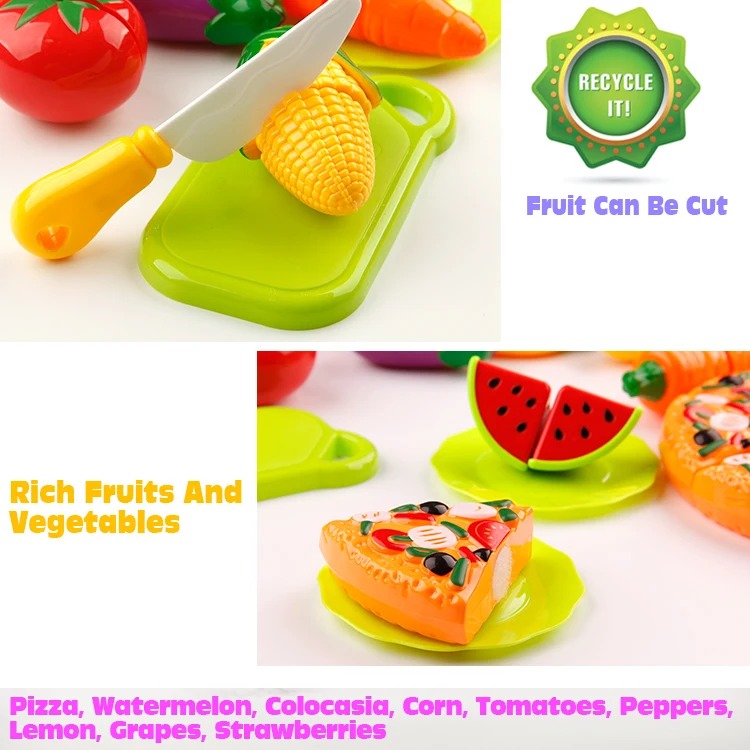 Product Name: 25PCS Plastic Fruits And Vegetables Material: Plastic ABS Menu: Pizza, Watermelon, Strawberries, Onions, Grapes, Carambola, Lemon, Corn, Pumpkin, Carrots and so on Features: