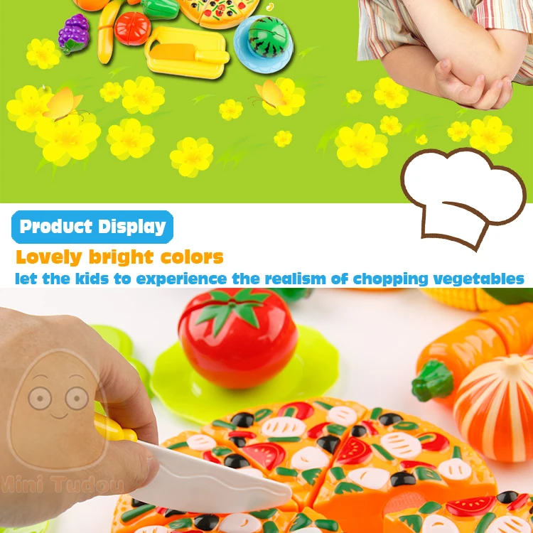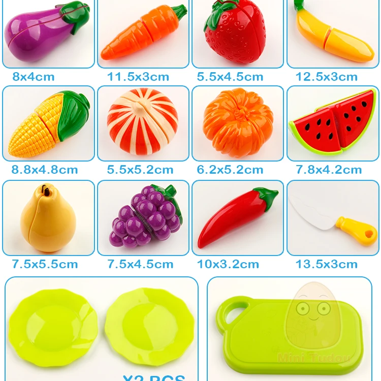 • Set of colorful fruit and vegetable toys for your children, and comes with a knife for children to cut the toys of fruit and vegetables.