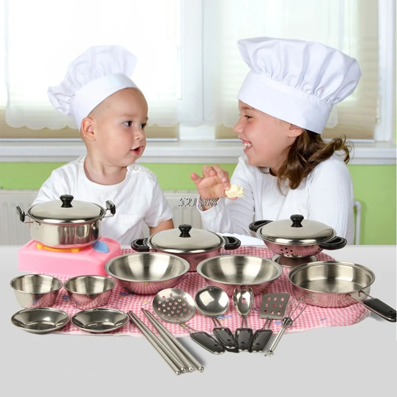 Safe and durable material: hand-polished stainless steel. Not like plastic,stainless steel is much more durable for children Developing abilities: Pretend play and role play develop children’s brain a lot Good for kids to know about cookware and their functions. Color: Silver Material: Stainless Steel Size: See the picture Quantity: 1Set No Retail Packages