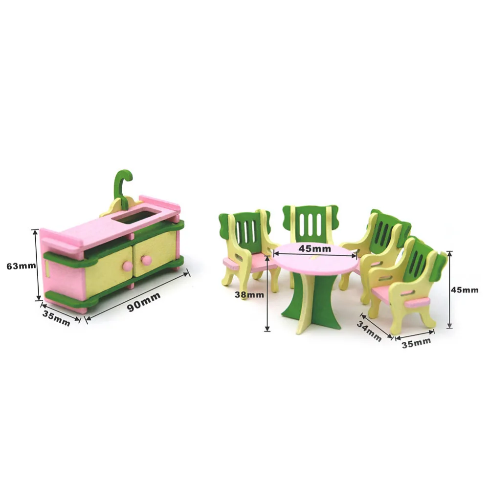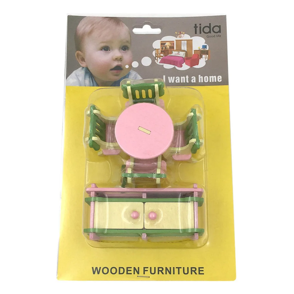 DollHouse Furniture Wooden Dolls Kitchen Dining Table Family Toy Kit Miniature Individual Baby Room Set Play Kids Children Gift