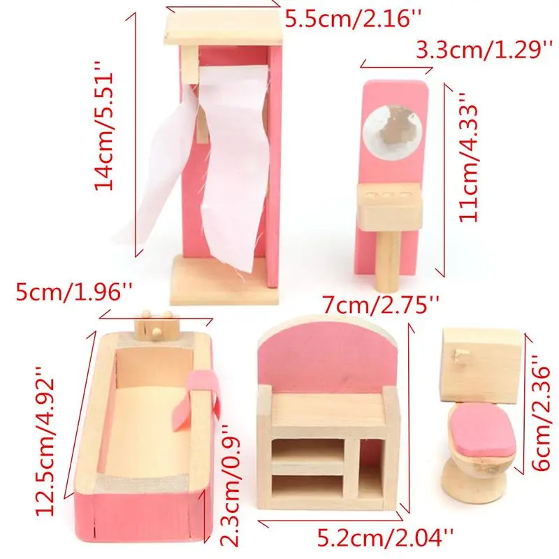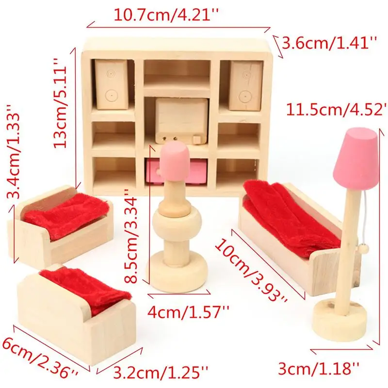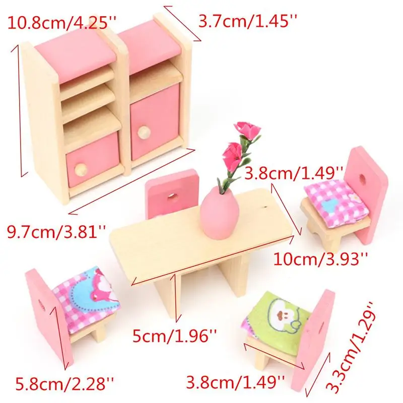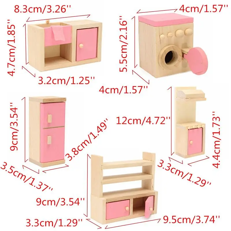 Package included: 1 Set x Dining Room or Kitchen or Living Room or Bedroom or Nursery or Bathroom Furniture Toys or Dolls Features: Brand New and high quality. Perfect for children playing, at home shows, collect, wedding or party decoration. Different tools are not the same shape, can teach baby recognize shapes. All small doors can be opened, high degree of simulation, all solid wood production safer. It will be the good choice for gifts. Enjoy your shopping time and have a good day. Notice: Please allow 1-2cm error due to manual measurement and make sure you do not mind before ordering. Please understand that colors may exist chromatic aberration as the different placement of pictures.