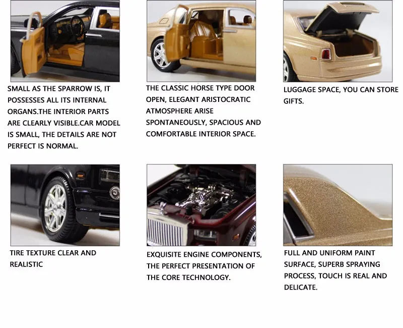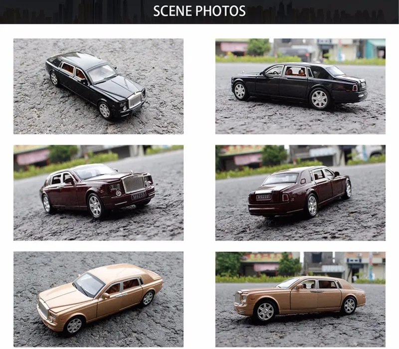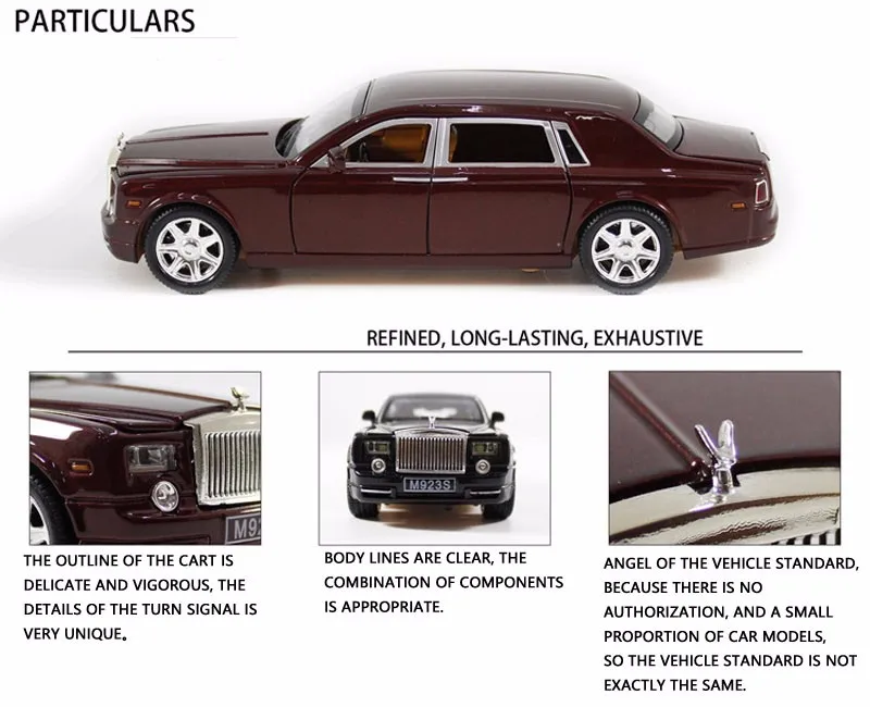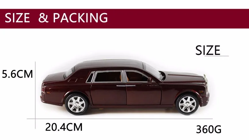 Color: Deep red, Black, Champagne color Material: Alloy Production process: Die Casting Car model scale: 1:24 Function: Lighting
