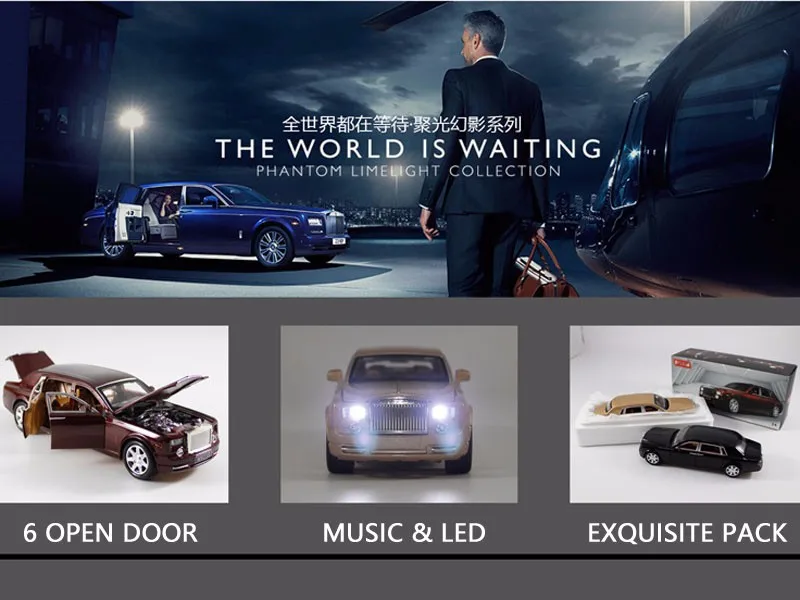 1/24 Phantom Lengthened Car Diecast Alloy Car Model Six-door High-end model Light Models High Simulation Toys Gifts Collections
