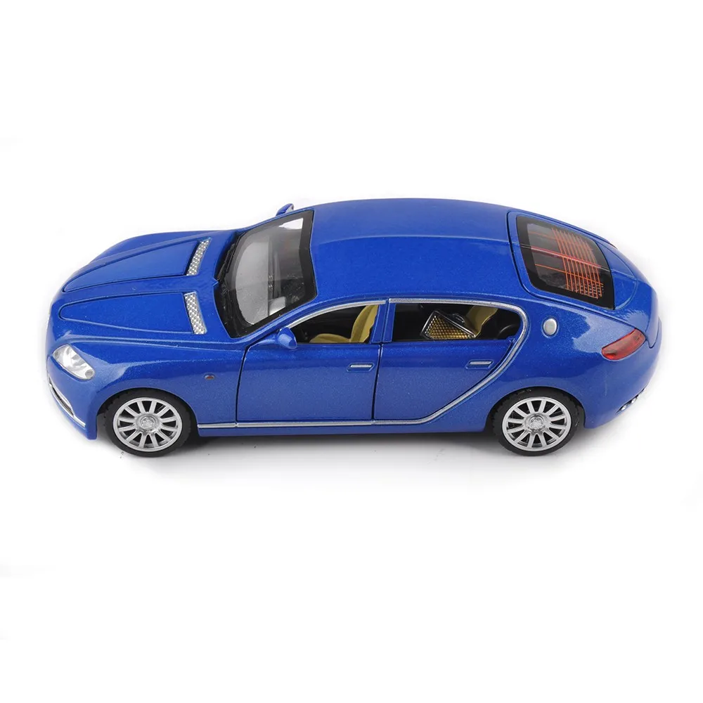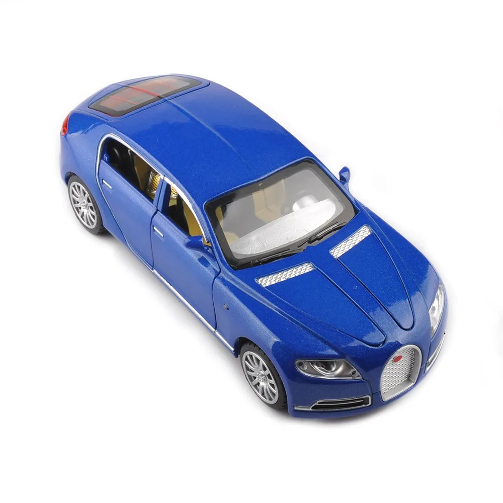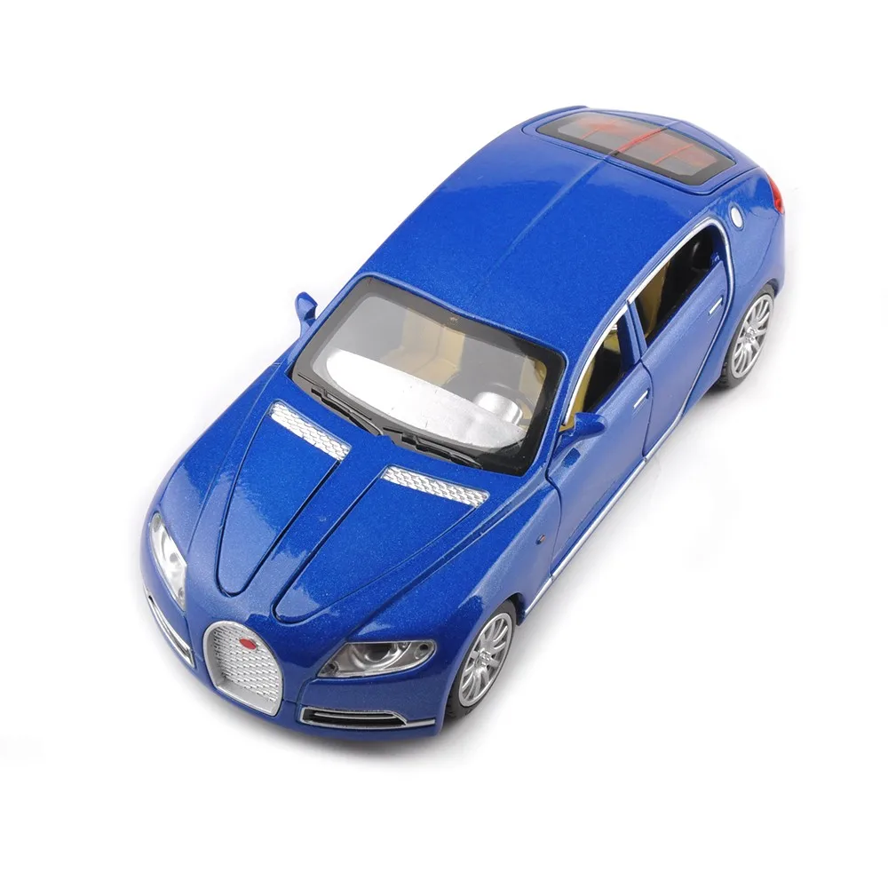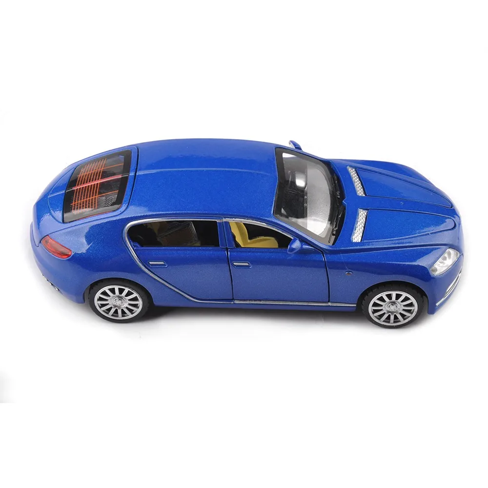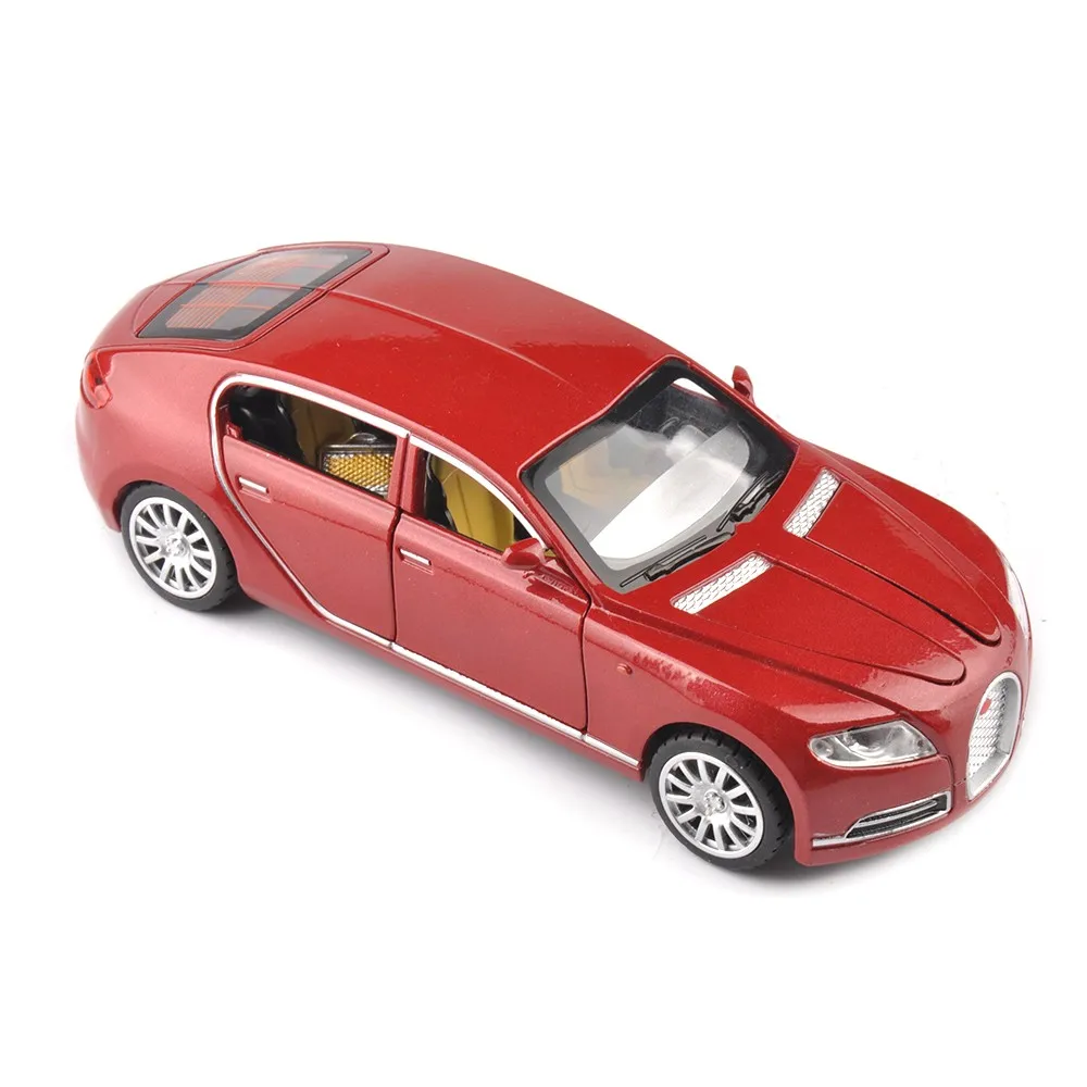 Descriptions: Material: Alloy,Plastic Size: L15.5cm*H4.5cm *W6.3cm Proportion:1:32 Function:With Music and Light, two doors could be opened, Unplug the underbody insulation sheet, open the two doors or put down the car on the ground, and then press the tail of the car,headlights is light white,taillights is light red and interior is lightsblue,Back Power Color:White/Red/Black/Blue Package includes: 1pc Bugatti Veyron Alloy Model;