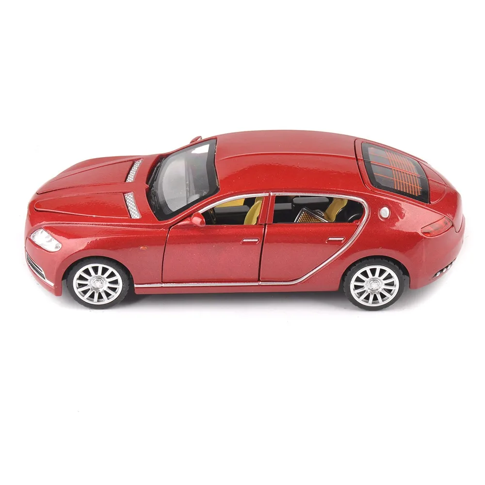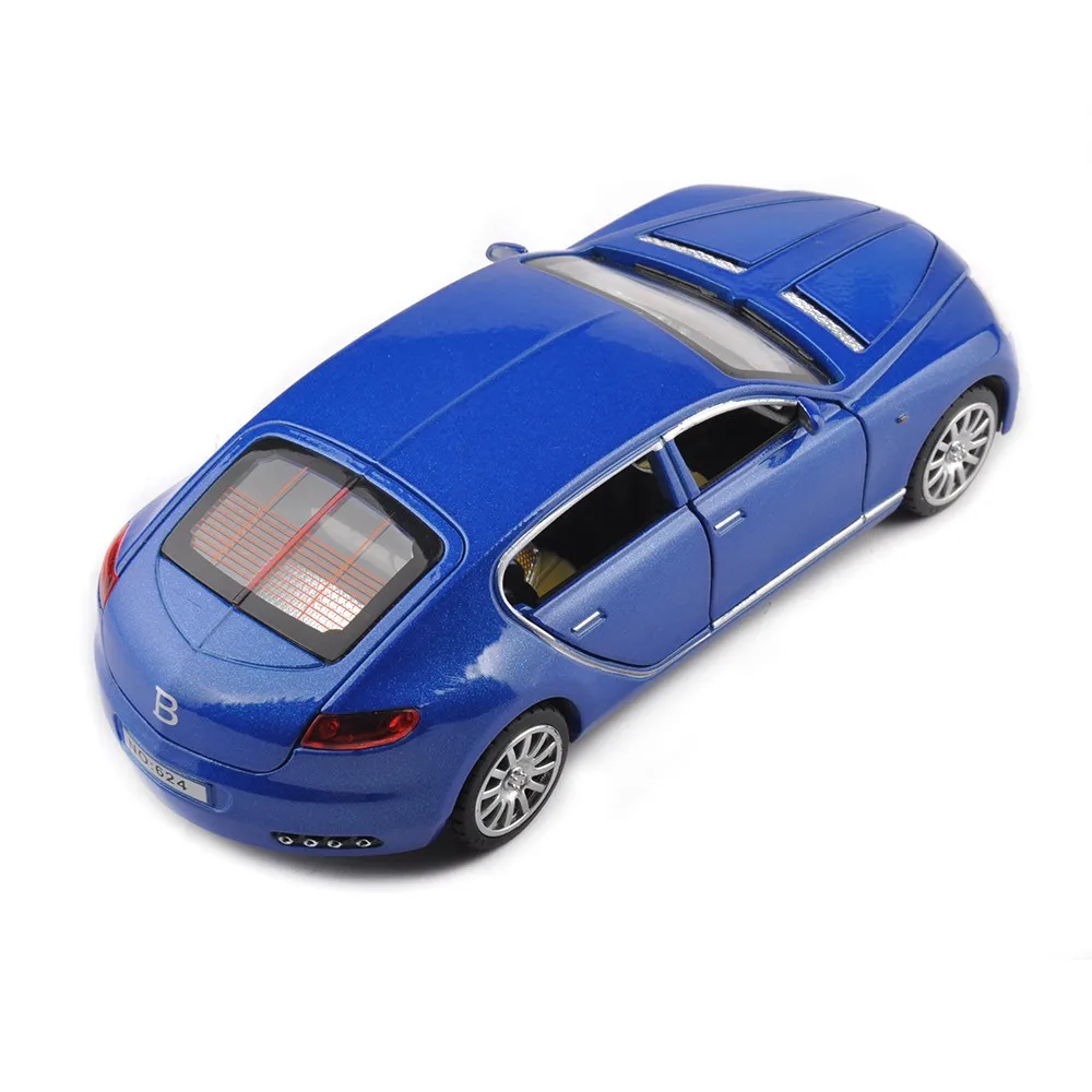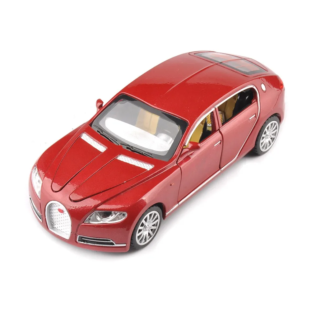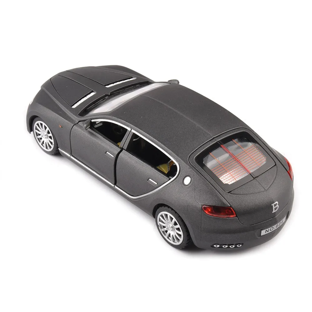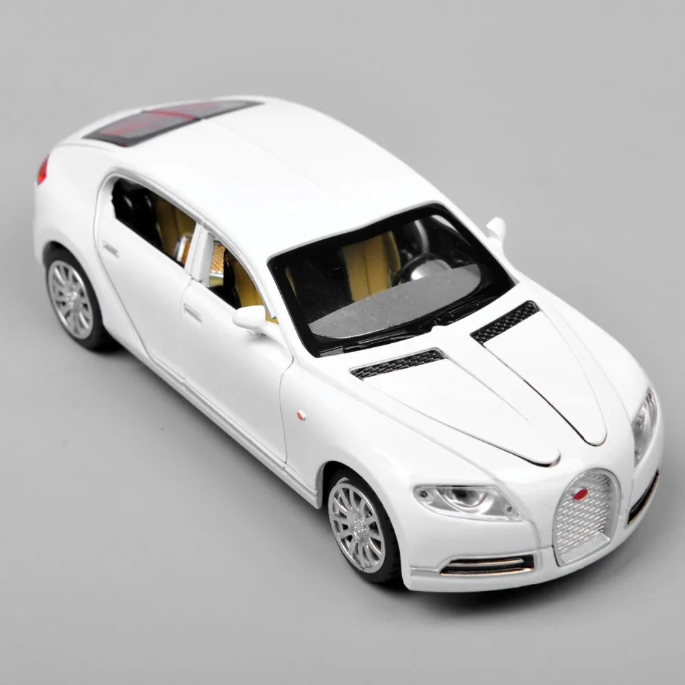 Descriptions: Material: Alloy,Plastic Size: L15.5cm*H4.5cm *W6.3cm Proportion:1:32 Function:With Music and Light, two doors could be opened, Unplug the underbody insulation sheet, open the two doors or put down the car on the ground, and then press the tail of the car,headlights is light white,taillights is light red and interior is lightsblue,Back Power Color:White/Red/Black/Blue Package includes: 1pc Bugatti Veyron Alloy Model;