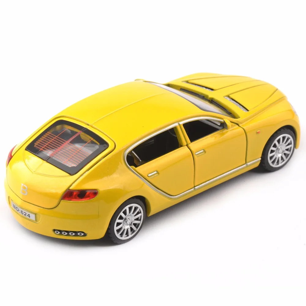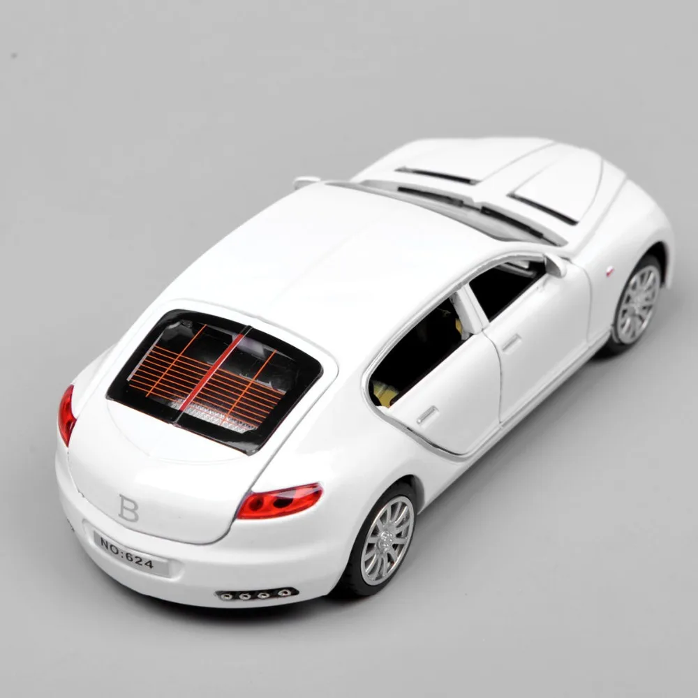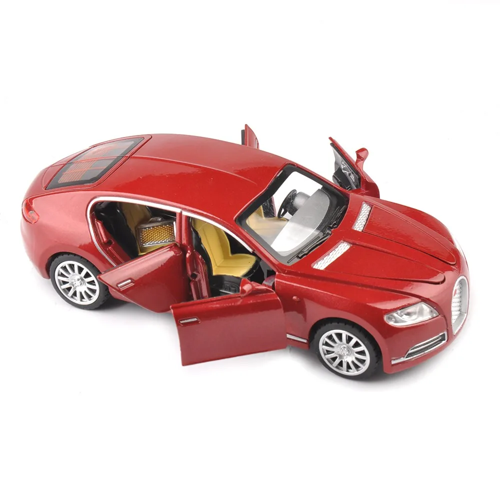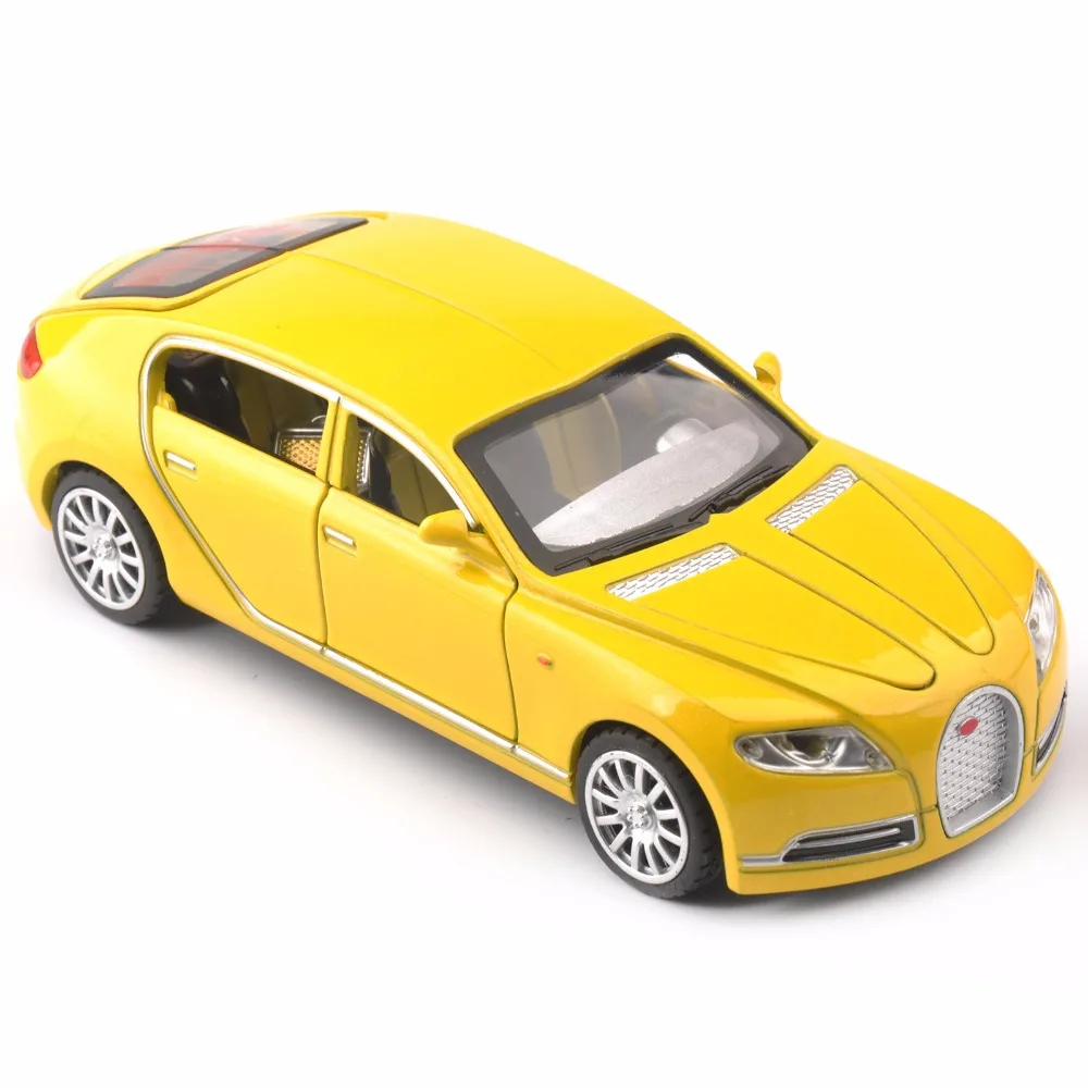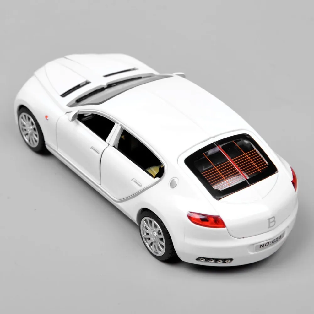 Descriptions: Material: Alloy,Plastic Size: L15.5cm*H4.5cm *W6.3cm Proportion:1:32 Function:With Music and Light, two doors could be opened, Unplug the underbody insulation sheet, open the two doors or put down the car on the ground, and then press the tail of the car,headlights is light white,taillights is light red and interior is lightsblue,Back Power Color:White/Red/Black/Blue Package includes: 1pc Bugatti Veyron Alloy Model;