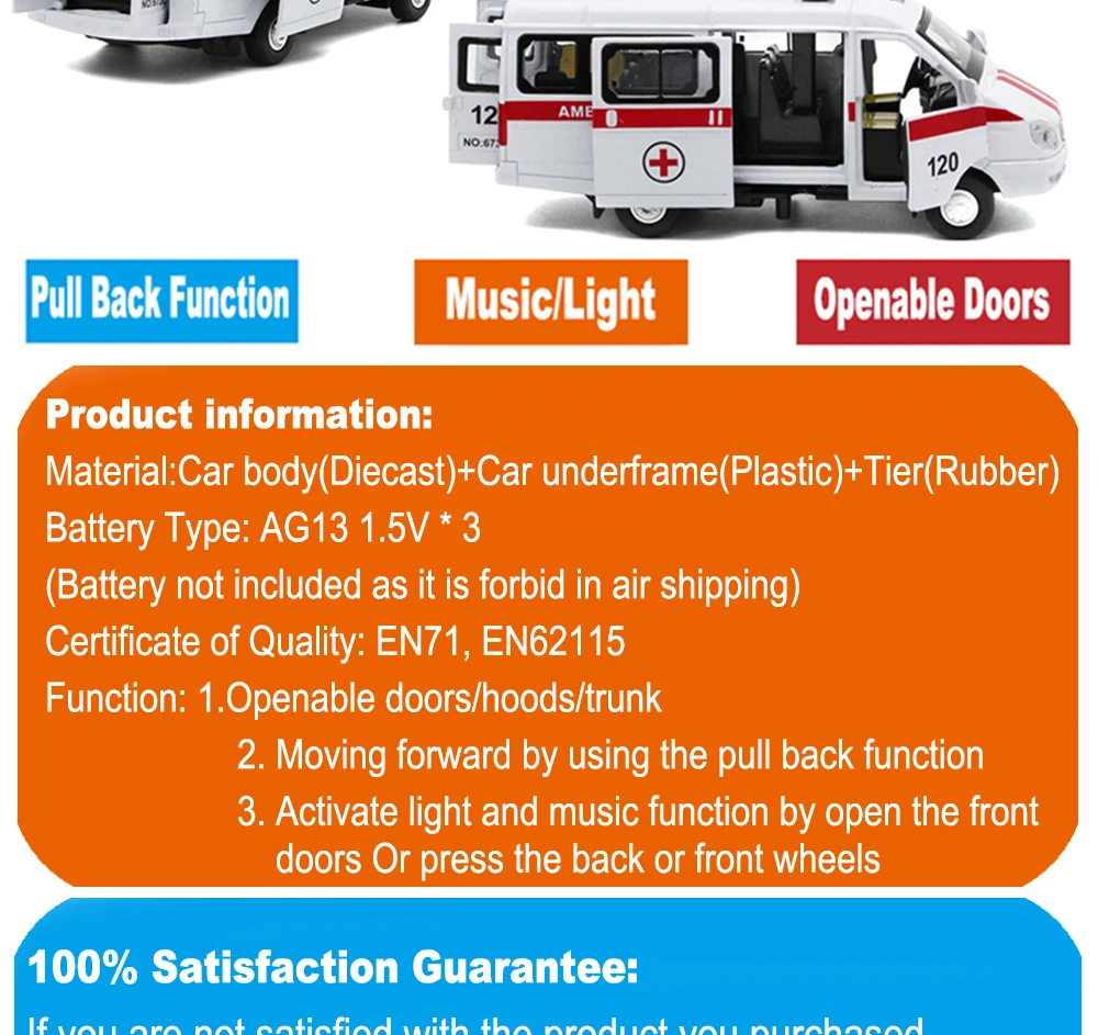 | Features | Diecast, Musical, Mini, Pull Back, Educational, Electronic, Model, Flashing |