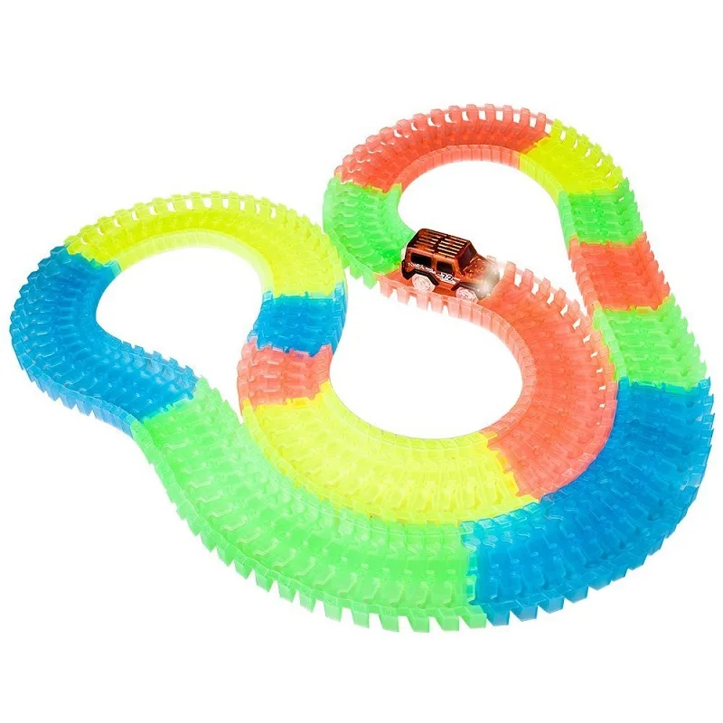 Features: 1)120/180/240/320/400/480/560/680/900 pcs track pieces with 1 pcs car 2)Glow in the dark 3)10pcs Tracks approx 13cm 4)Pieces are bendable and flexible 5)For ages 3+ 6)We send Random Color Car 7)Due To Light, Display Or Other Reasons, The Real Products And Pictures Will Be Some Gaps