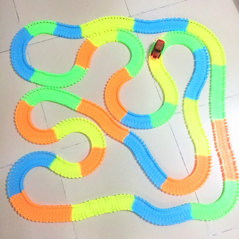 2017 Glow in dark toys 120/180/240/320/400/480/560/900pcs track + 1pcs Led car Glowing Race Track Bend Flex Cars toys for children brinquedos speelgoed